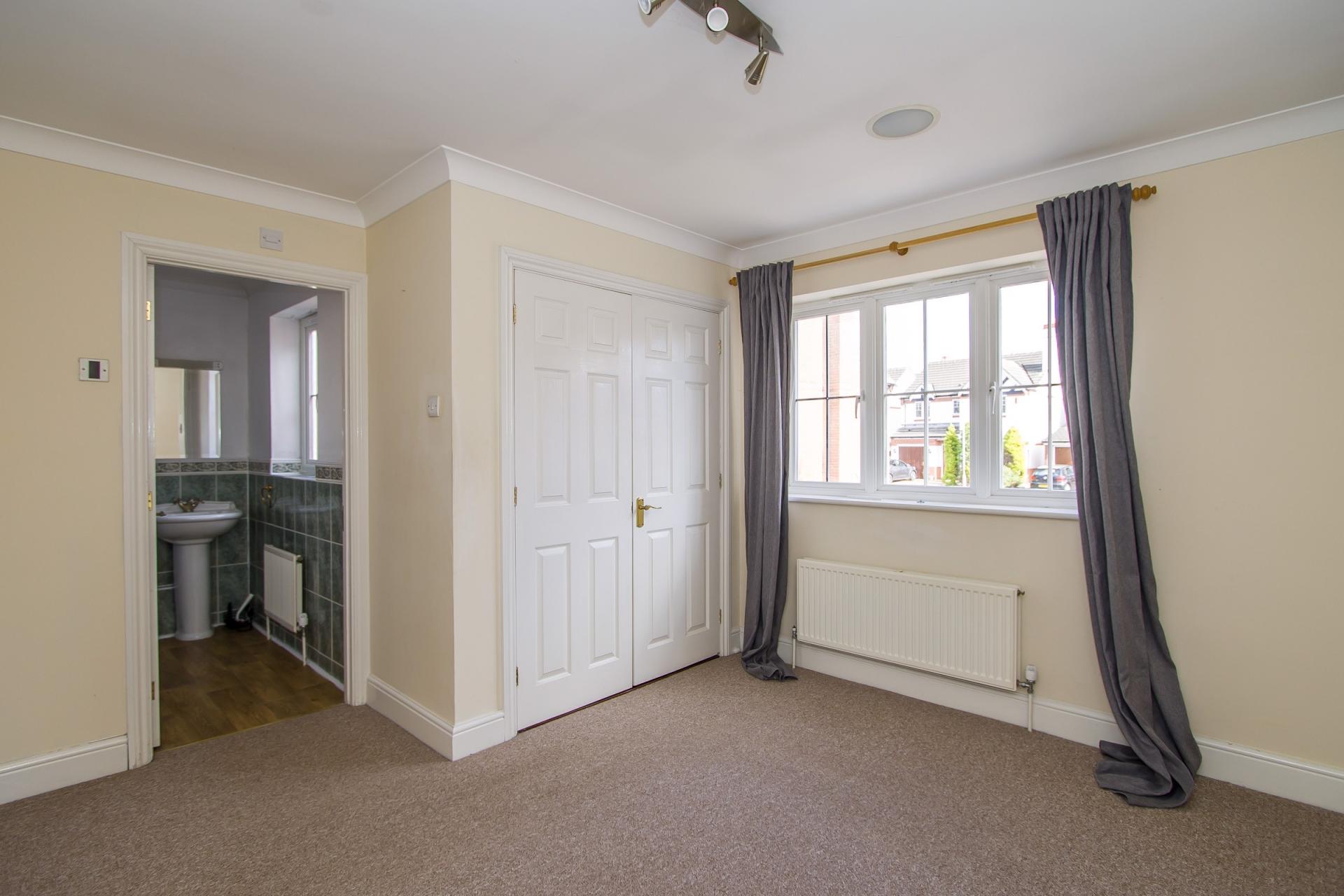 Double bedroom with two fitted wardrobes and an en-suite bathroom. Fitted carpet. Central heating radiator. Power, phone and TV points. Coved ceiling.