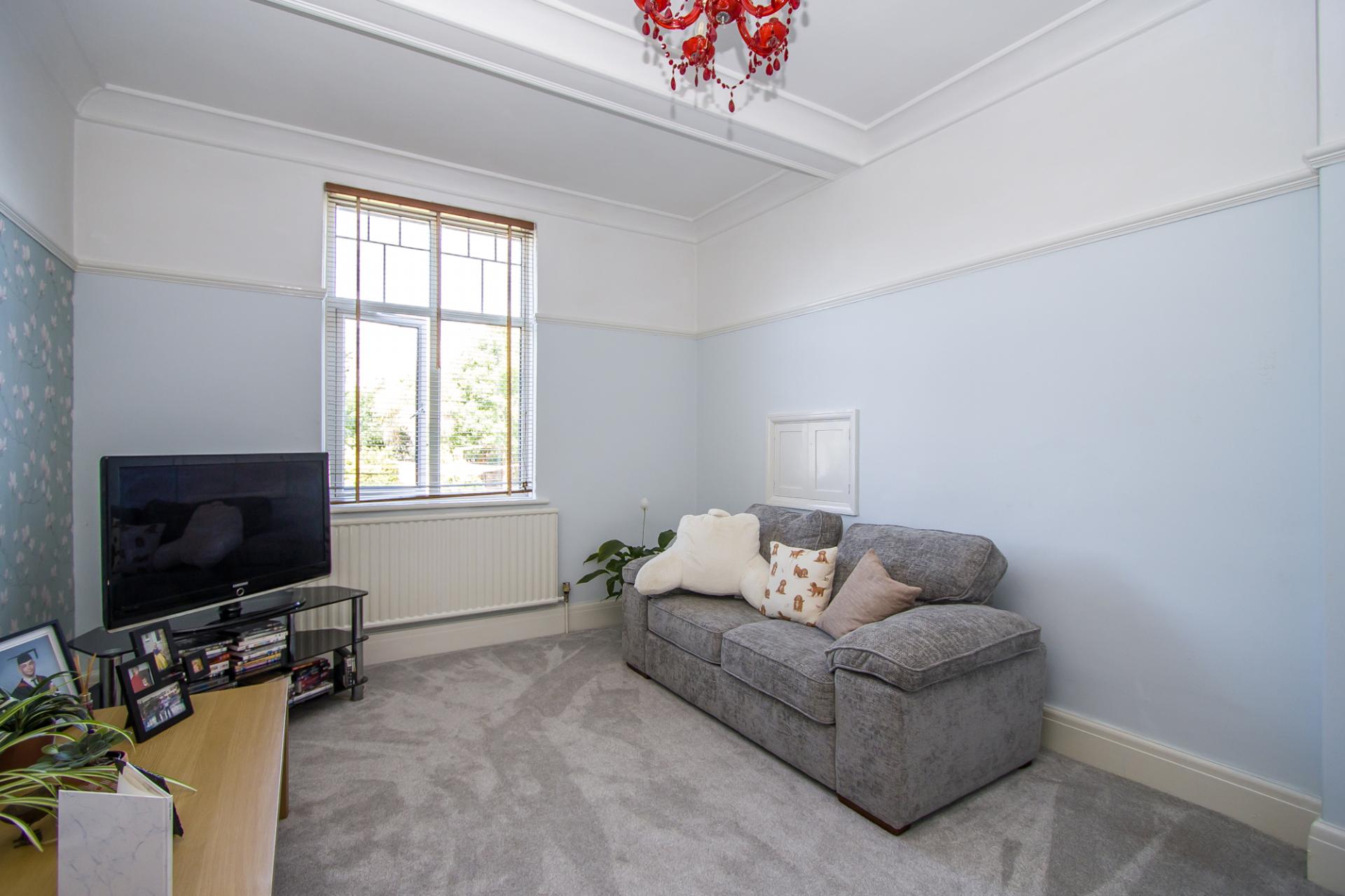 Fitted carpet. uPVC double glazed window to the rear overlooking the garden. Original picture rails, cornice and skirting boards. Power points and TV point. Central heating radiator.
