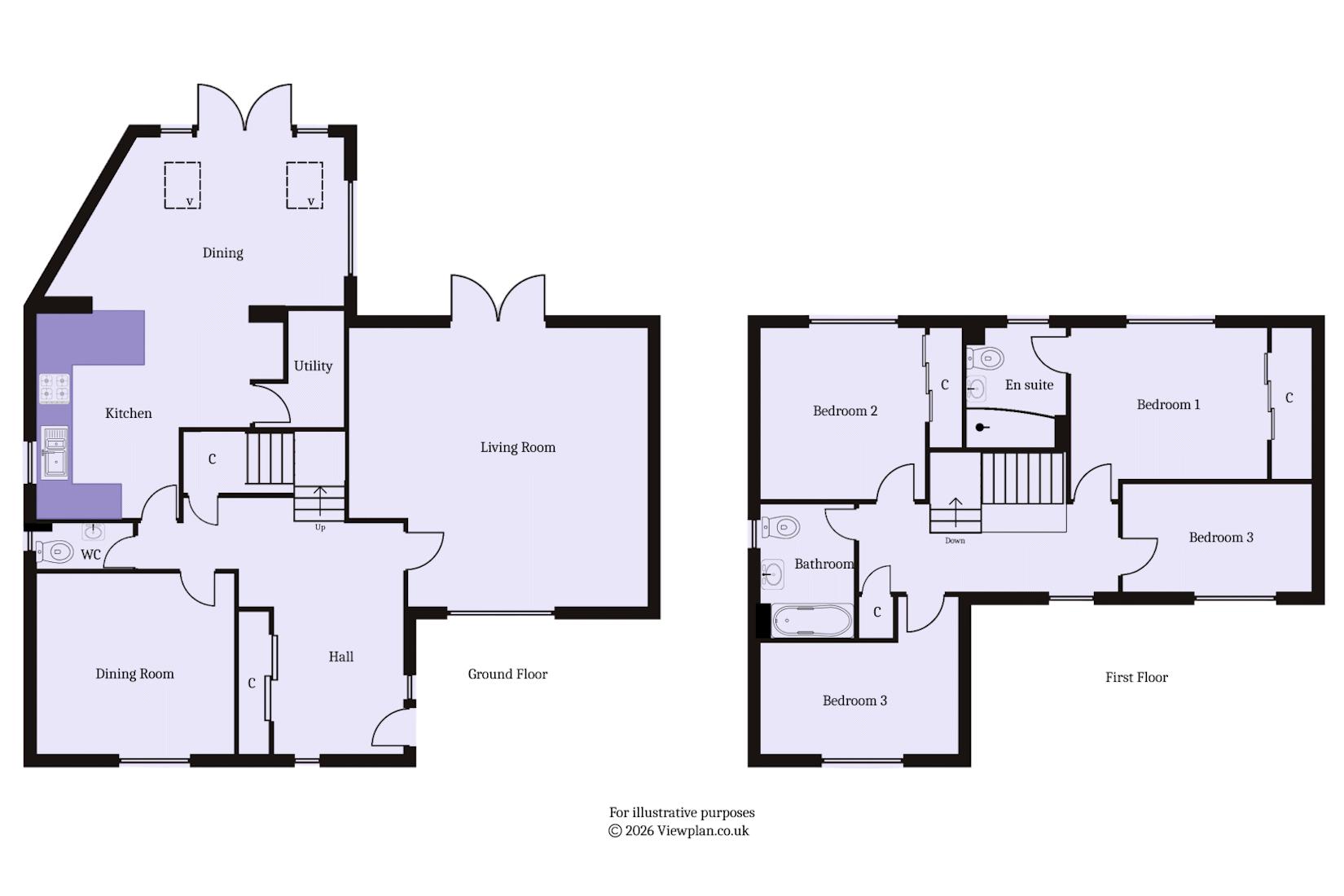 - Two bathrooms - one an en-suite to the main bedroom