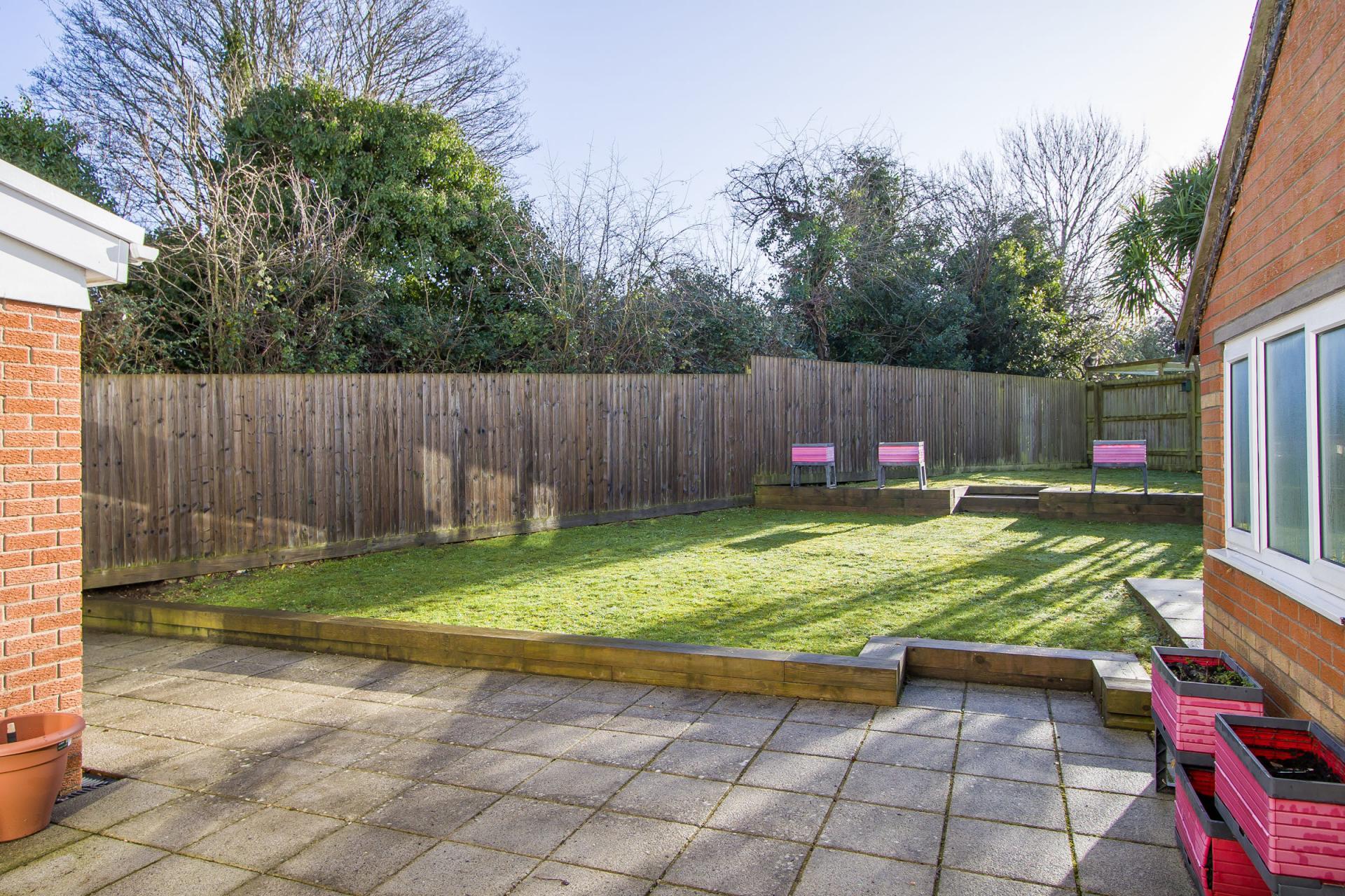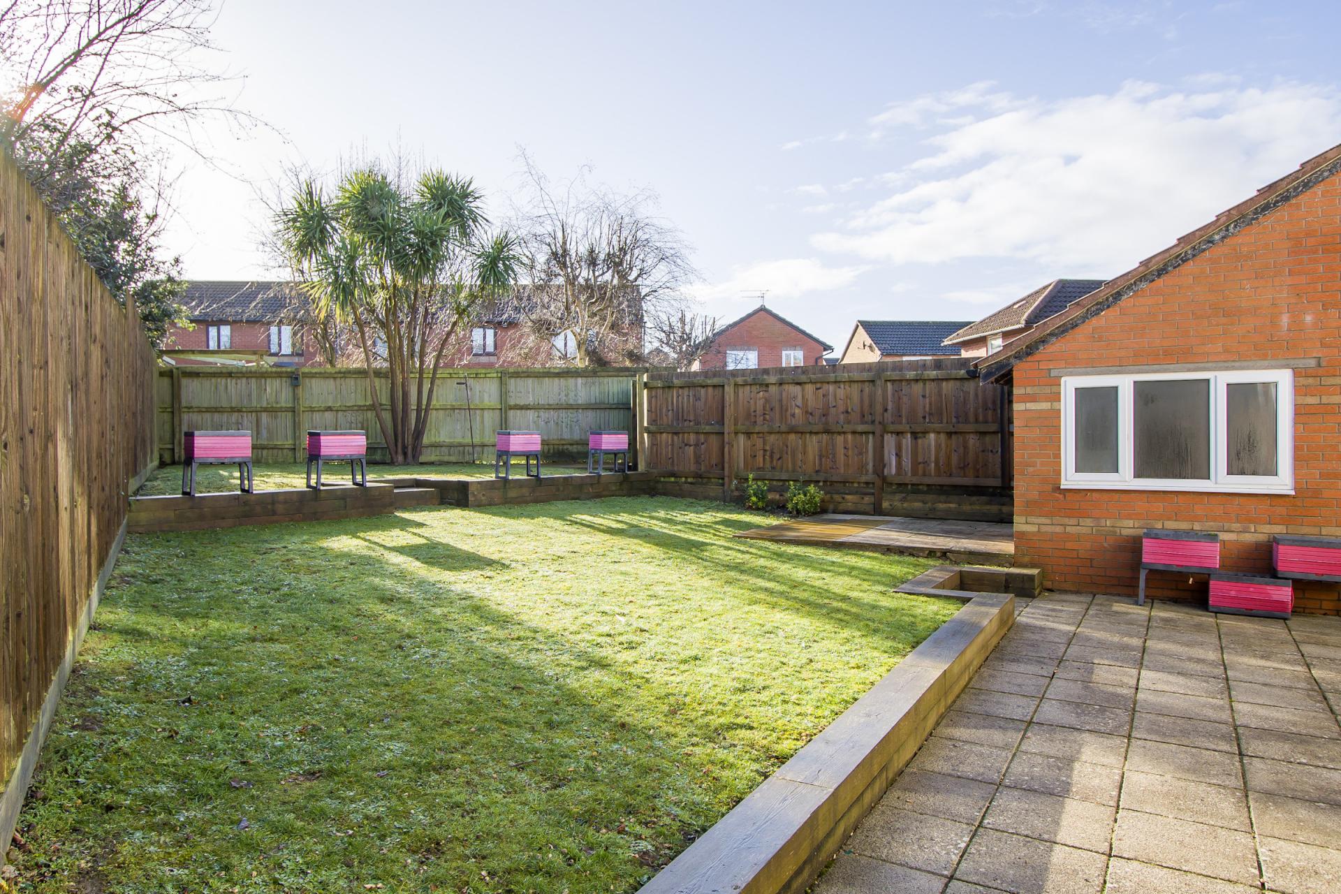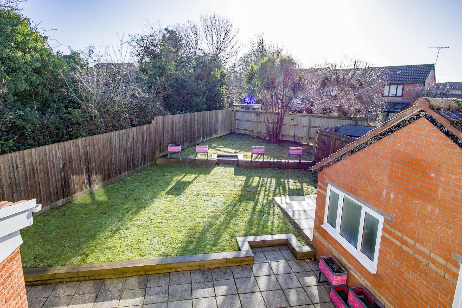 - Enclosed, south facing rear garden
