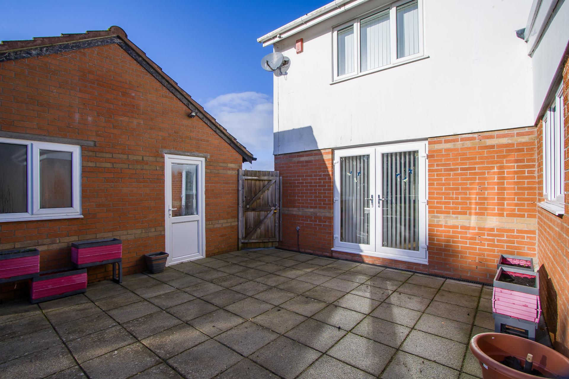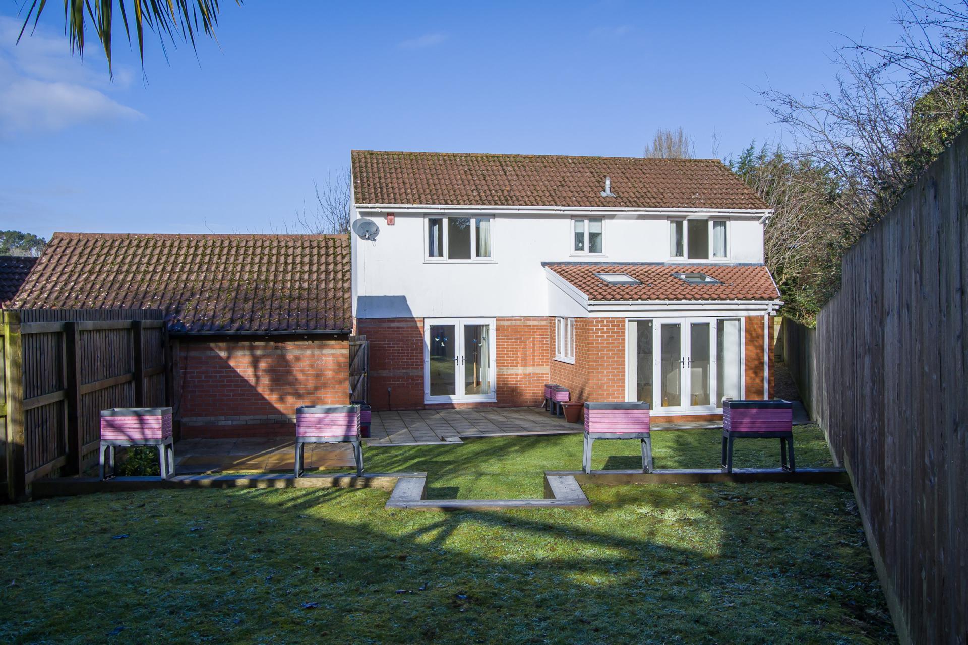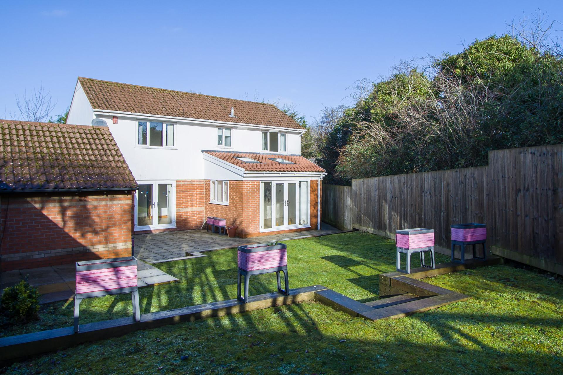 - Enclosed, south facing rear garden