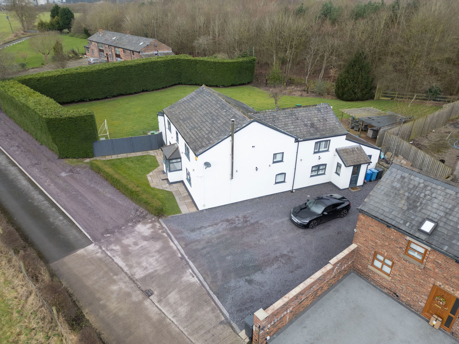 ** EXCEPTIONAL DETACHED FARMHOUSE LOCATED IN PRIVATE LOCATION, EXTENDED & OFFERS VERSATILE HIGH SPECIFICATION ACCOMMODATION OVER TWO FLOORS ***Adams Estate Agents are delighted to offer this stunning detached farmhouse located in a rural position at the end of a country lane with open fields to the front but within easy access of Warrington & Widnes amenities and close to the M62 motorway. Set within generous grounds this property offers versatile accommodation that would ideally suit a buyer that required space for a multi generational family or perhaps those looking to accommodate elderly relatives. It is currently structured as a very large single dwelling with two separate staircases. Exceptionally well presented throughout with many recent improvements including a bespoke fitted kitchen with family area as it's centre piece. Viewing is necessary in order to fully appreciate this property's position and many qualities.