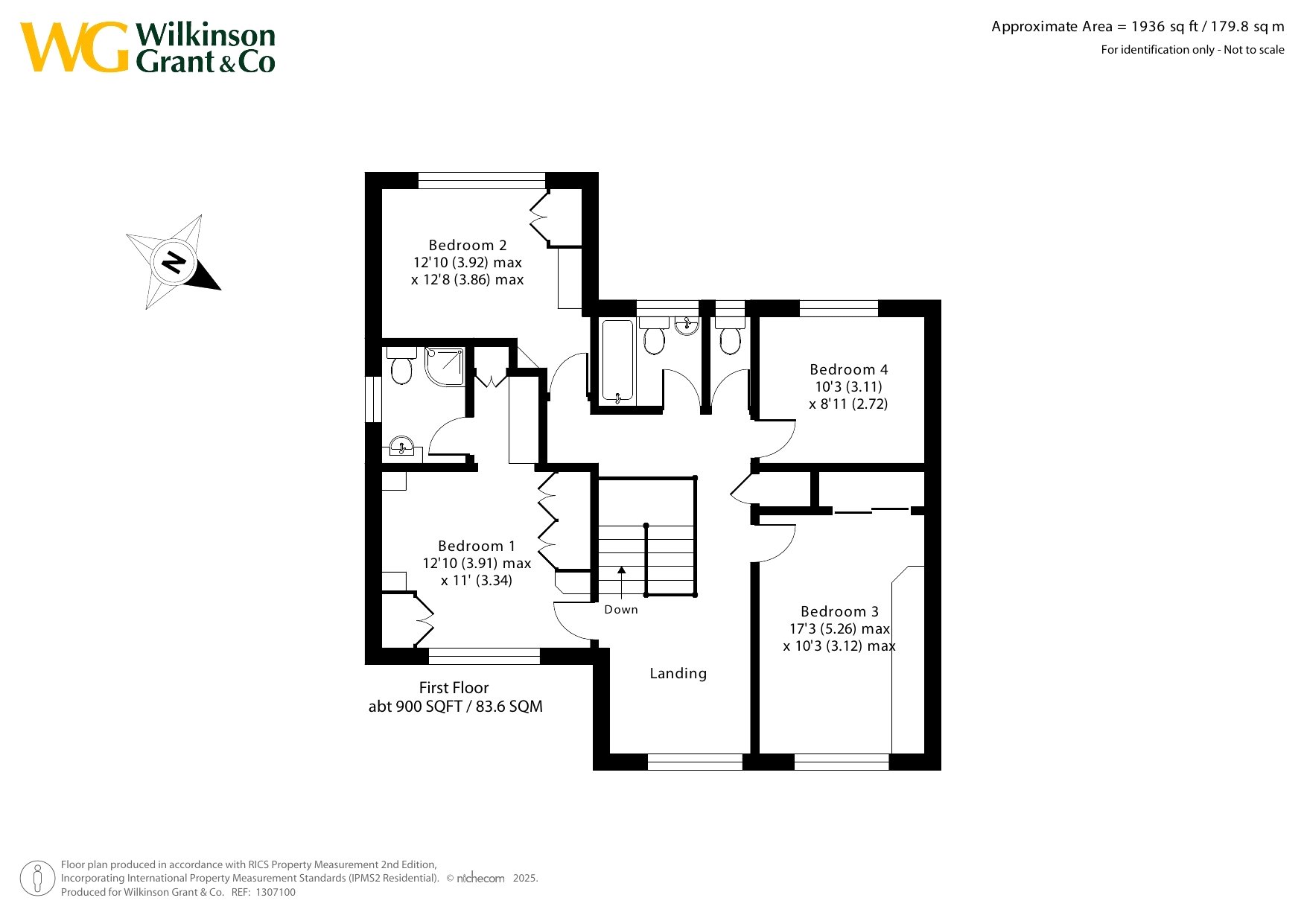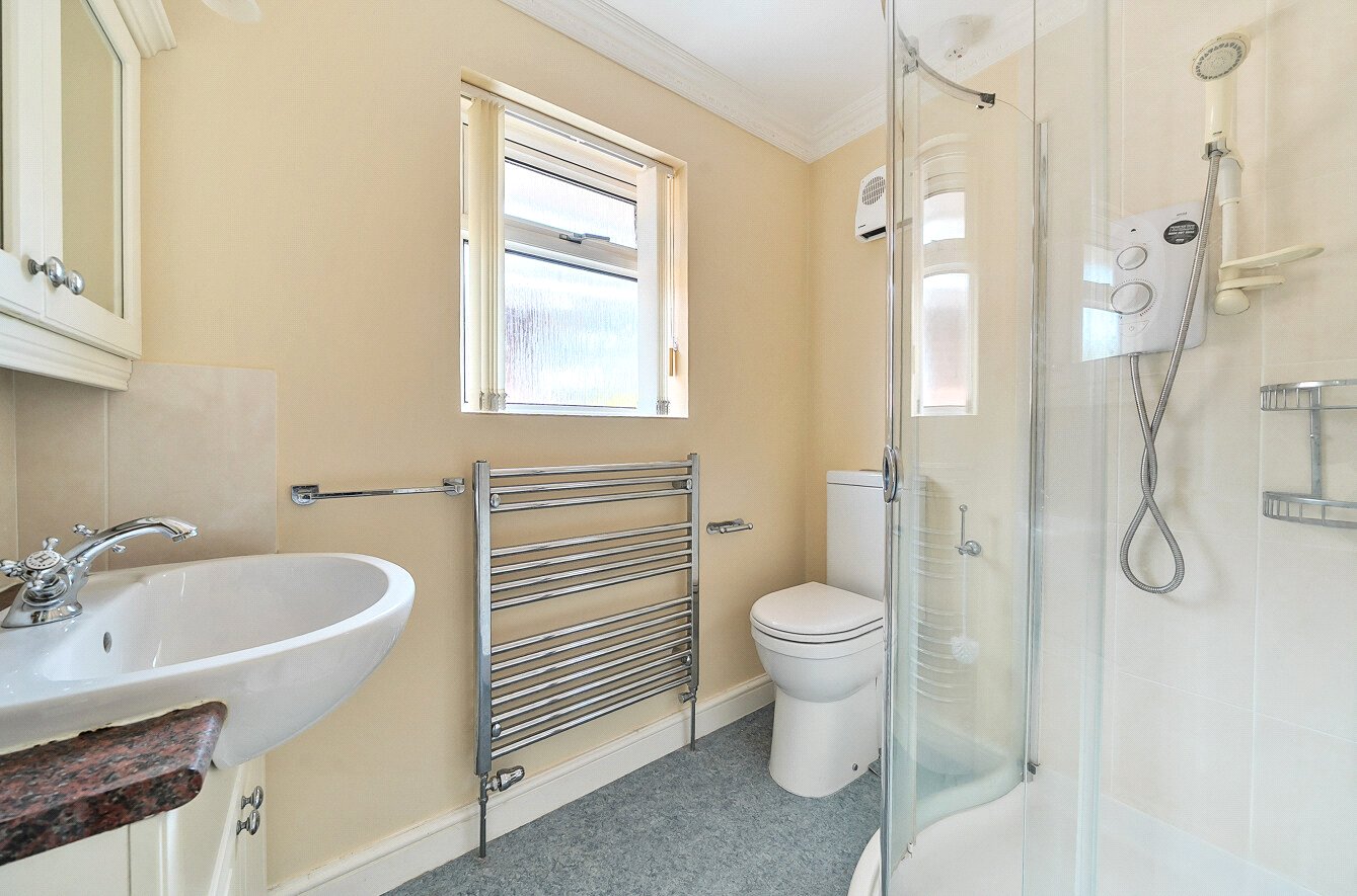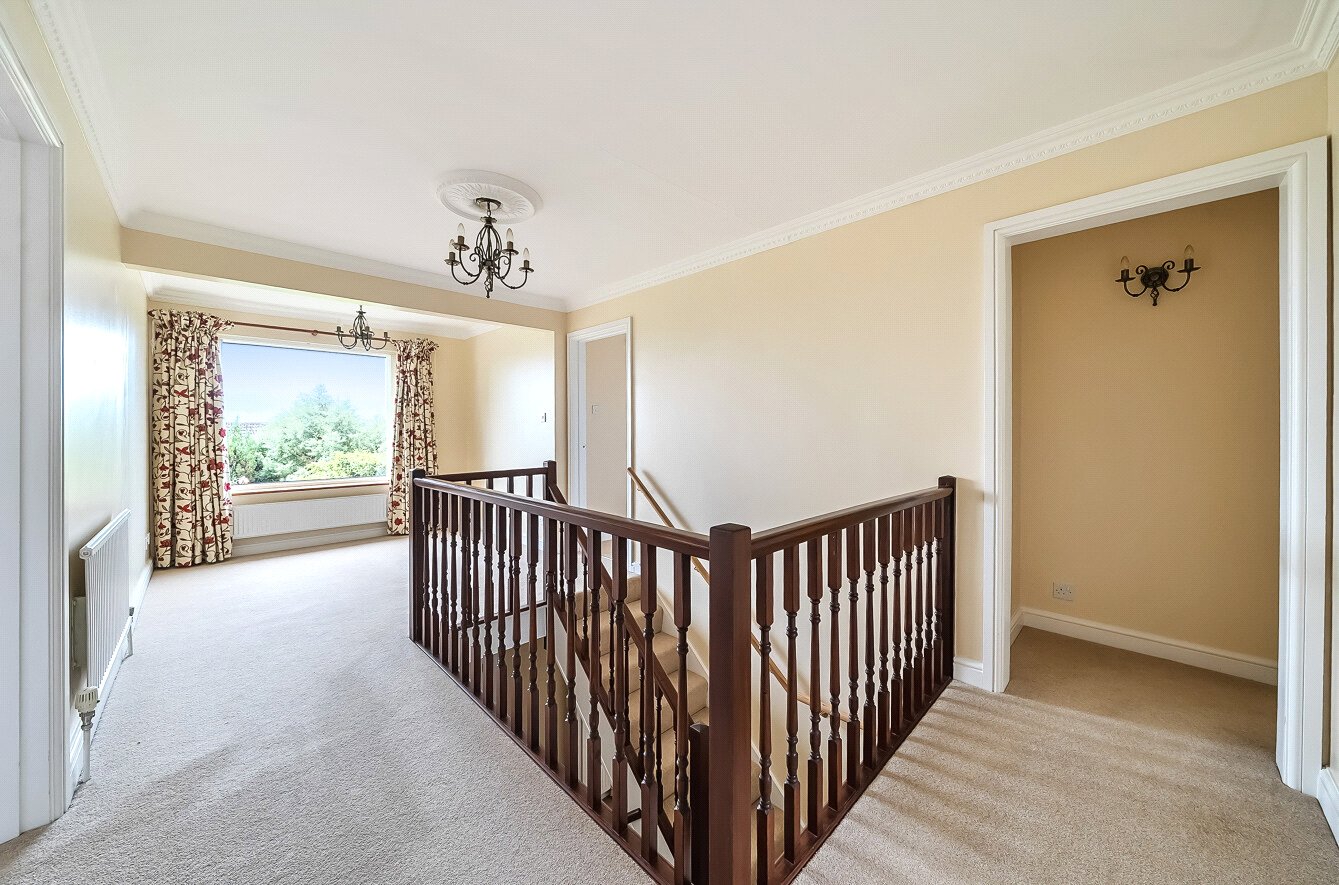 Upstairs, a spacious galleried landing provides space for a desk or study area if desired, with a large picture window offering superb far-reaching views. There are four bedrooms and a family bathroom. The principal bedroom enjoys lovely views and includes a range of wardrobes, a dressing area, and an ensuite shower room with a Mira shower, WC, and wash hand basin. Bedrooms two and three also benefit from fitted wardrobes and bedroom furniture.
