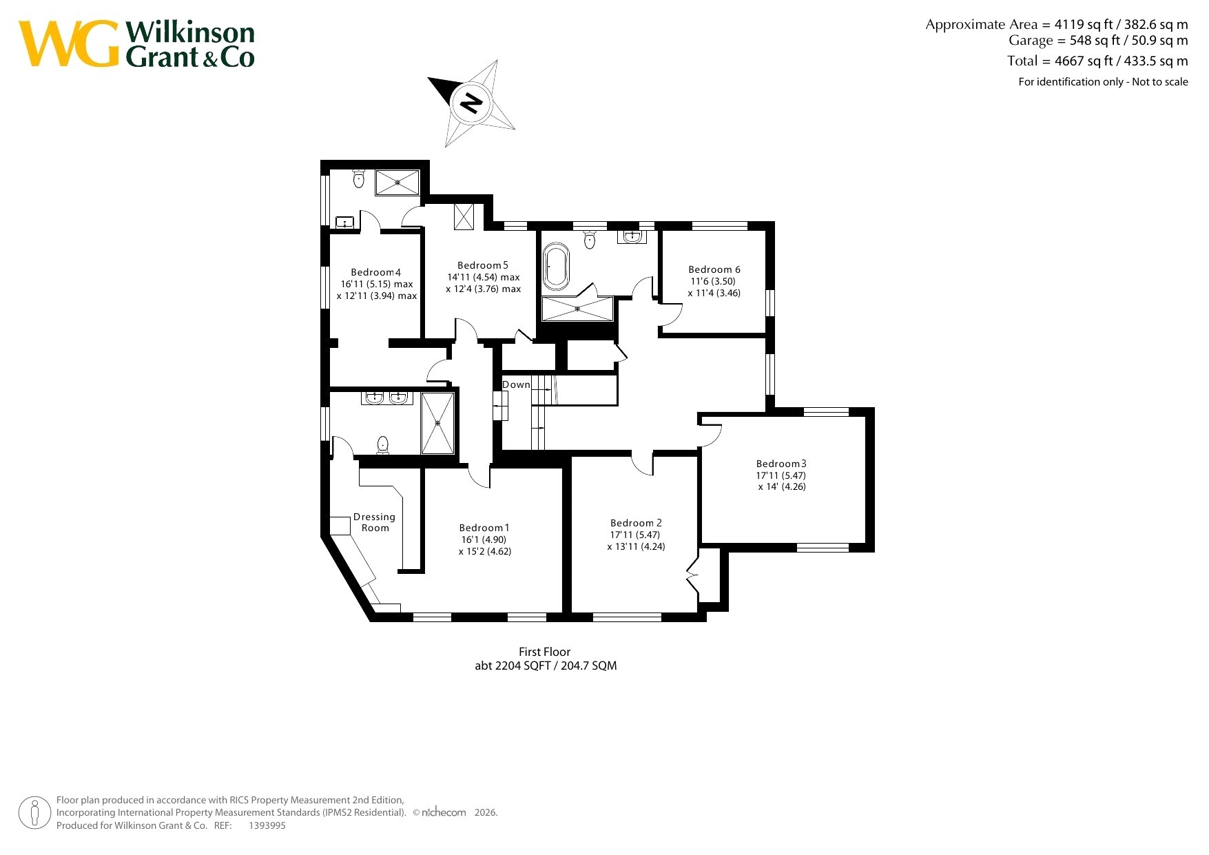 The principal bedroom suite is particularly impressive, featuring a bespoke fitted dressing room with amazing storage options and a luxurious en suite bathroom. Five further well-proportioned bedrooms provide excellent flexibility, two of which share an en suite, making the layout ideal for larger families or multi-generational living, while a contemporary family bathroom completes the floor.