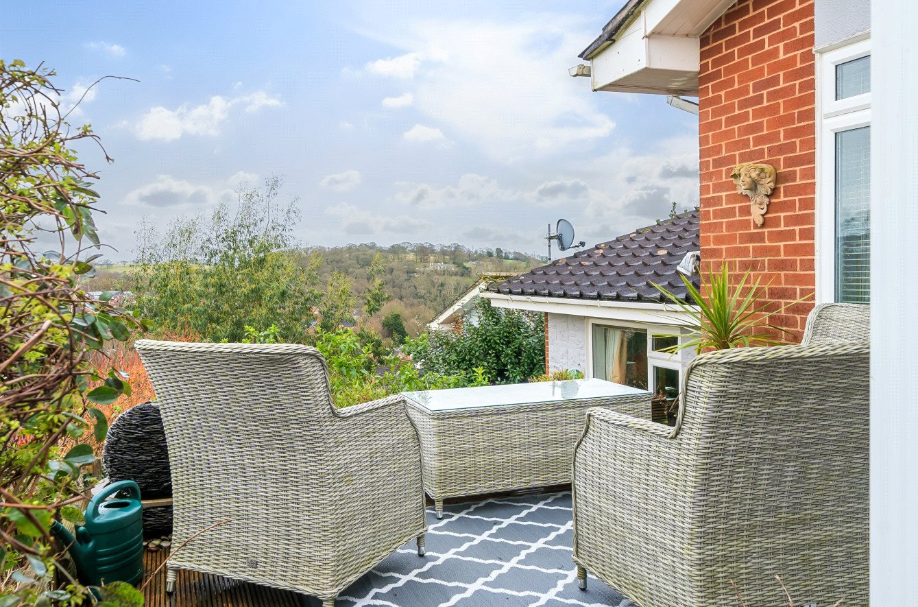 The garden wraps around the property with a nice mix of well tended lawn, attractive and well stocked planted borders and a sun deck next to the conservatory with lovely open views. There is an attractive area of slate chipped front garden and a courtesy light by the porch. To one side there is a single garage and parking for approximately 4 cars.