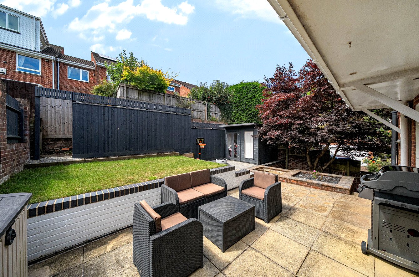 Outside to the front of the property is off-road parking for two to three cars whilst the rear garden is westerly facing with a paved patio ideal for dining out. There is a raised level lawn and a second patio area at the rear of the garden, where a summer house - fully powered and ideal for use as a home office - can be found. A gate provides side access.