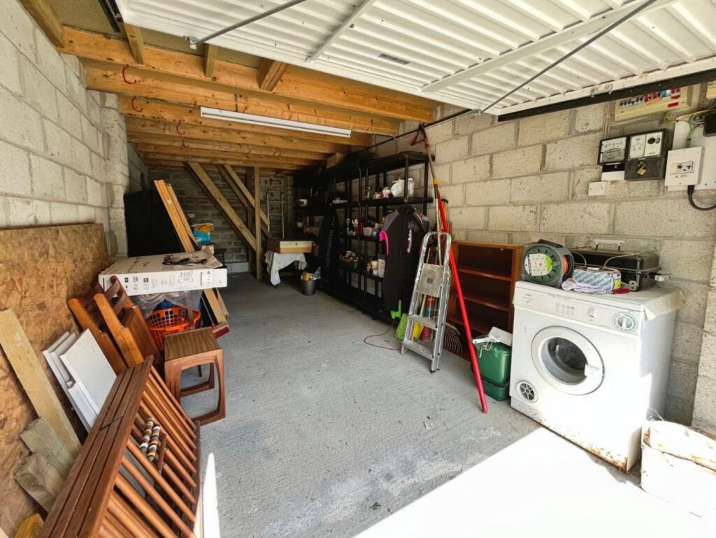 Garage - 7.19m x 2.97m (23'07 x 9'9) - Situated in a separate block adjacent to the parking area. Metal up and over door. There is power within the garage. To the rear of the garage are stairs up to a large storage room that measures 19'07 x 9'08
