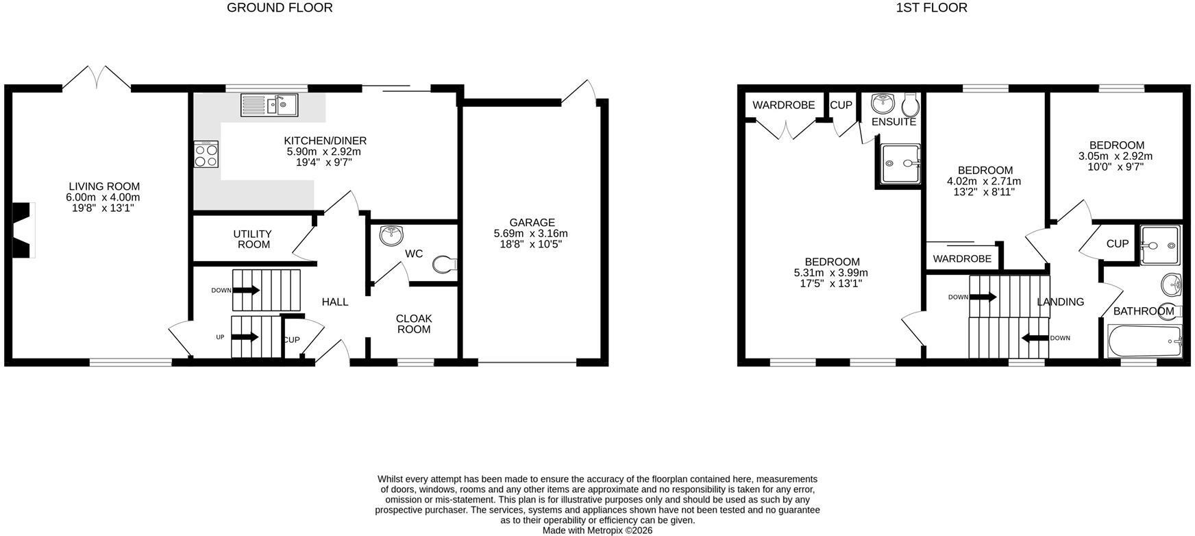 The accommodation is arranged over two floors and is thoughtfully laid out. To the ground floor, the property features a generous living room with ample space for relaxing and entertaining, along with a light and airy kitchen diner that forms the heart of the home. The kitchen diner benefits from excellent natural light and provides plenty of space for dining, making it ideal for both everyday family life and hosting guests. Additional ground floor conveniences include a utility room providing additional storage and cloakroom with WC making an ideal office space.