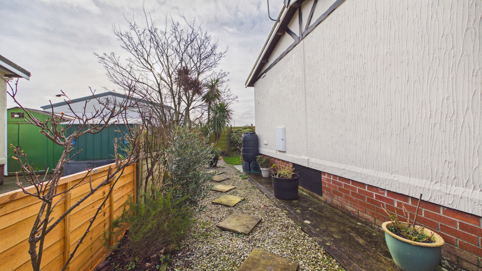 There is parking for one vehicle to the side of the property leading to the garage with shed to rear. Gardens to three sides are enclosed by wooden fencing and laid to patio, granite chip and lawn with outside tap.