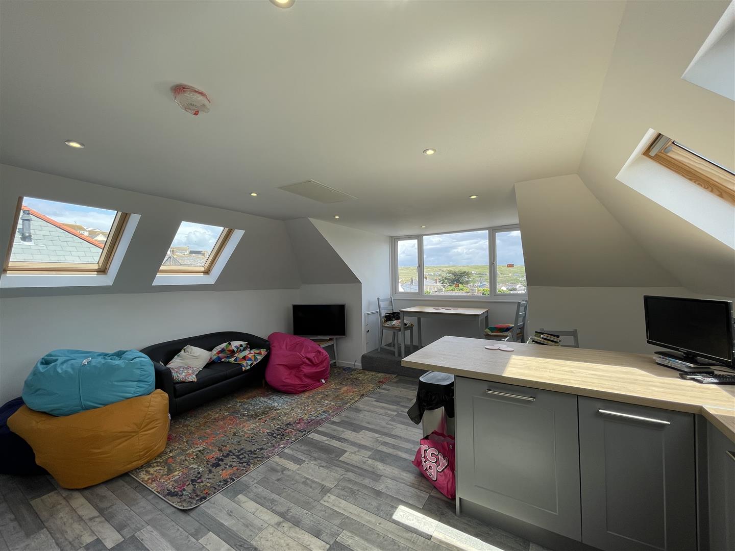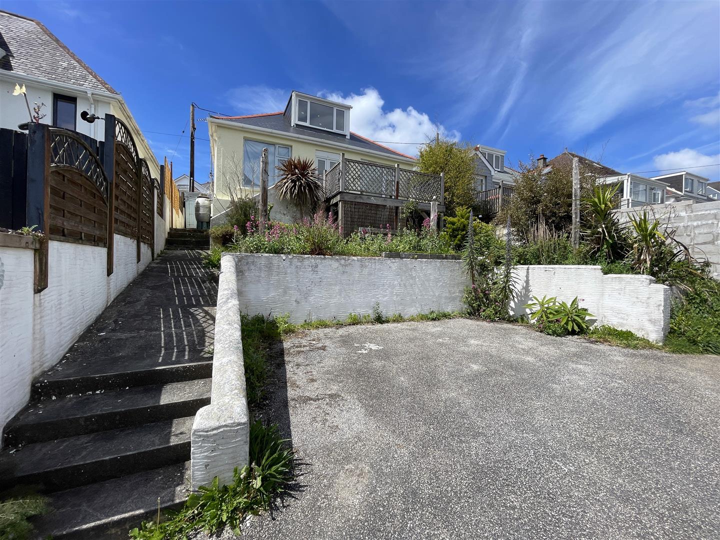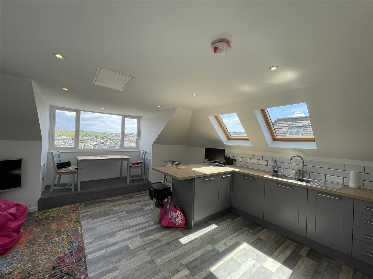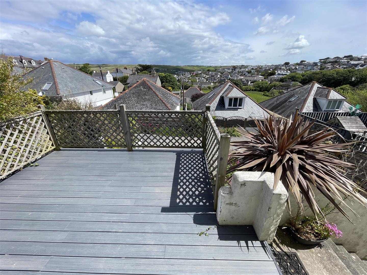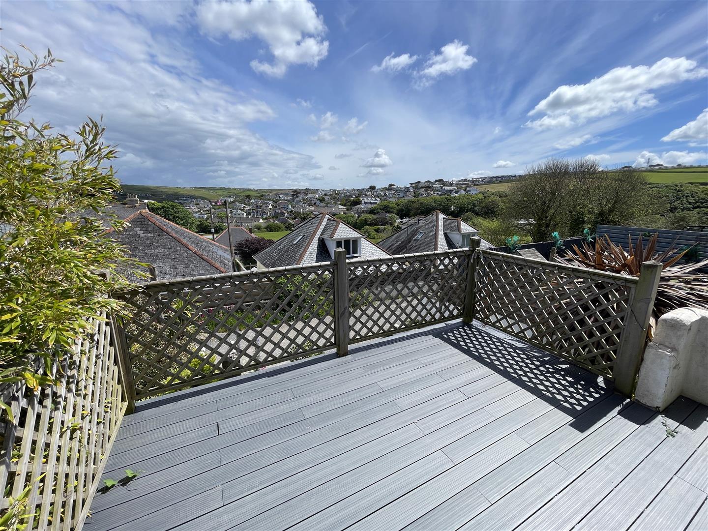 This versatile property has been recently updated but still retains further future potential. The accommodation is reverse level with a kitchen / living / dining room upstairs taking advantage of fantastic far reaching views over Perranporth to the golf course. The property has parking to the front and a sunny composite sun deck. Once inside, a central hallway connects five useful and flexible bedrooms (although many may want to use some of these for other purposes of course). One of the bedrooms has an en-suite shower room and there is a separate family bathroom with large shower enclosure and separate bath. Heading upstairs, the first floor offers a large light and bright open plan space with a dormer window providing super panoramic views. The kitchen has been refitted with a range of grey shaker style units and has a lovely breakfast bar. The appliances are integrated with the oven, hob, extractor, dishwasher, fridge and freezer all built-in. The property has a replacement roof and UPVC double glazing. Electric heating will be installed. There is pedestrian access via Bolenna Lane also.