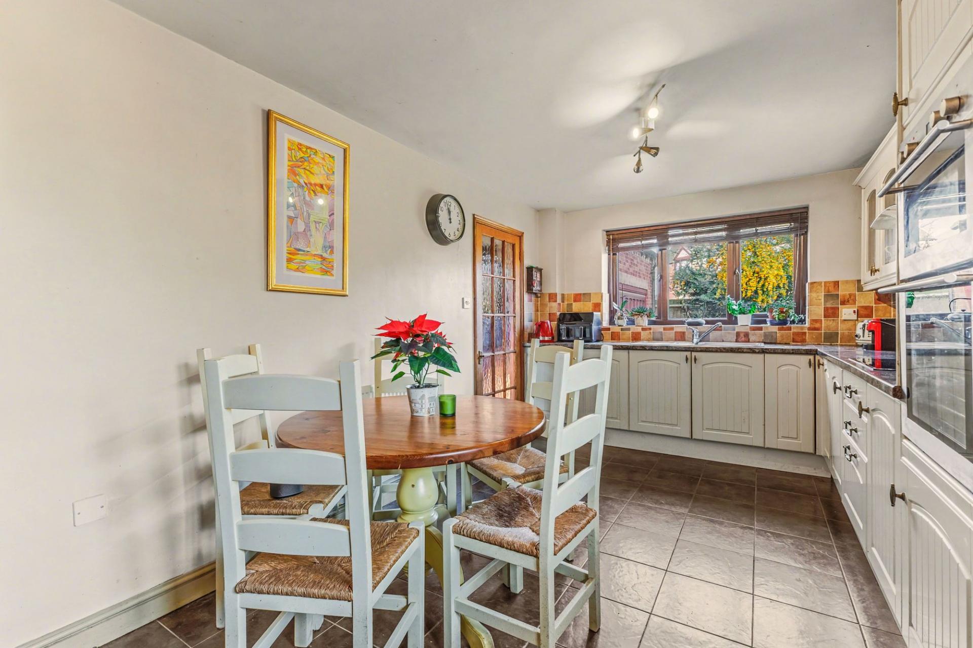Each of the four bedrooms is a comfortable double, ensuring ample space and versatility The main bedroom benefits from an en-suite bathroom and fitted wardrobes, bedroom two also benefits from fitted wardrobes. A well-appointed family bathroom serves the remaining bedrooms, and a ground floor WC provides further practicality for daily living.