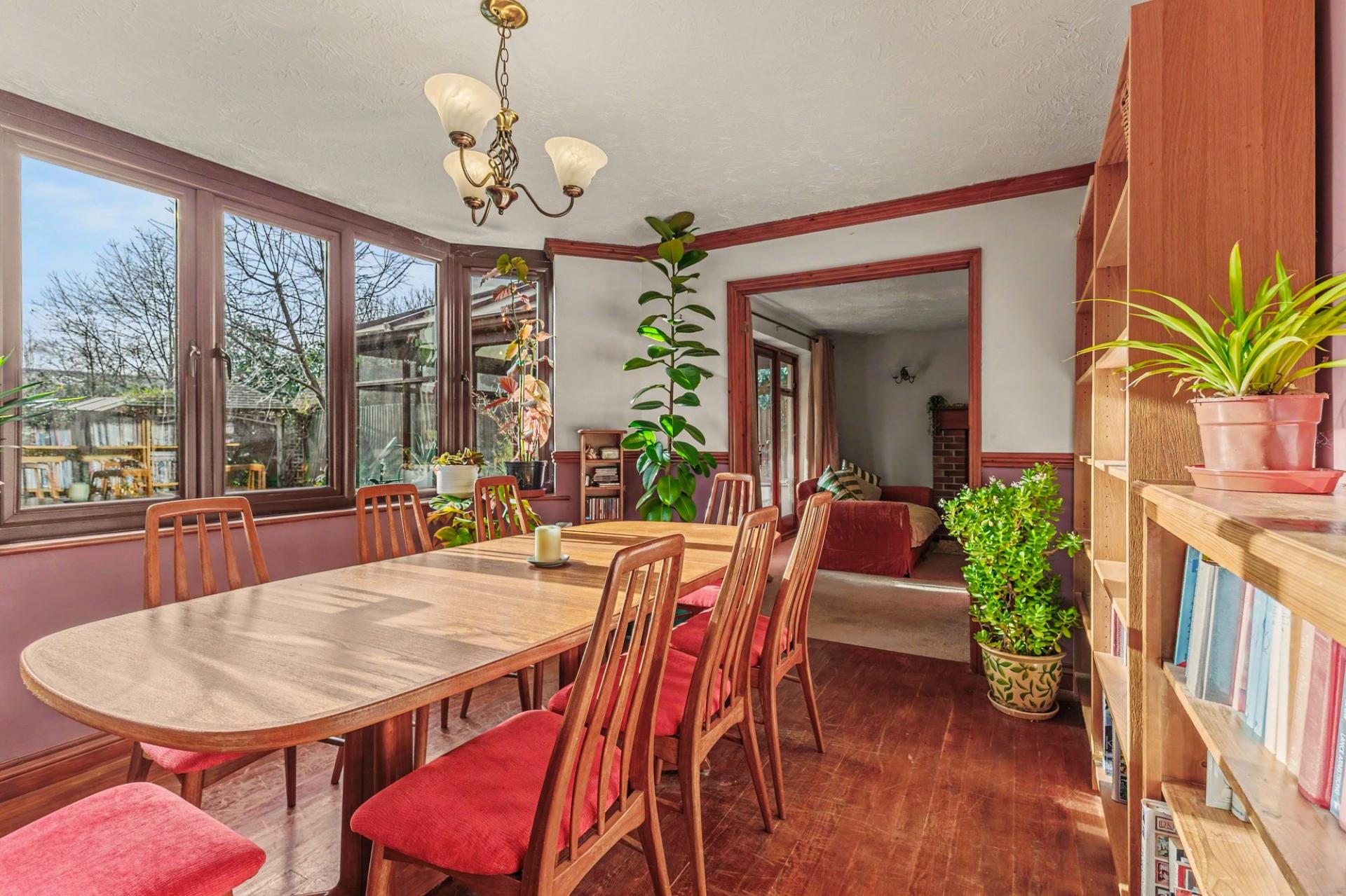The welcoming entrance hall leads to a generously proportioned living room which features a log burner, the living room provides lots of natural light. The kitchen / breakfast room is thoughtfully designed with ample storage and workspace, complemented by a separate utility room that adds convenience and provides rear access to the garden. In addition there is a spacious dining room, conservatory, and study/office.