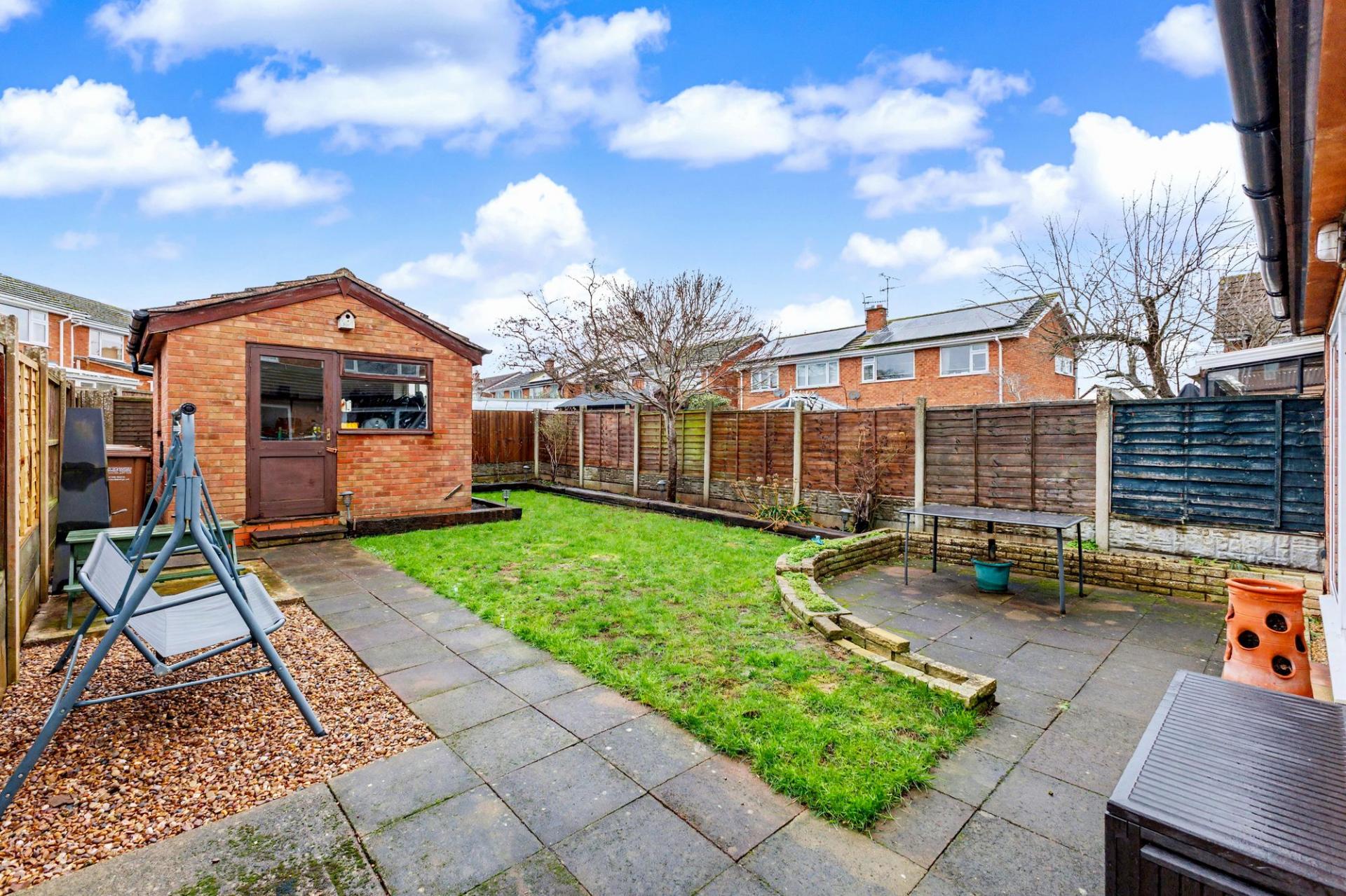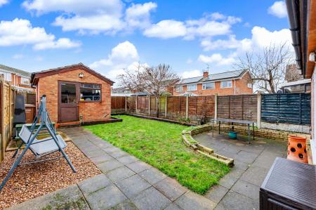 The private rear garden is a true highlight of this property. The garden is mainly laid to lawn, bordered by mature shrubs and fencing, ensuring privacy. There is a patio area and pathway leading to the outdoor storage space which offers further versatility. The property also benefits from side access, making garden maintenance and storage convenient.