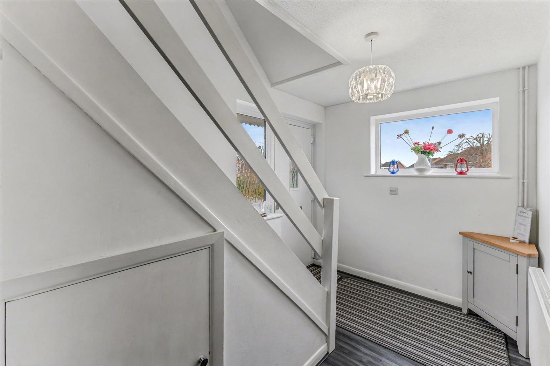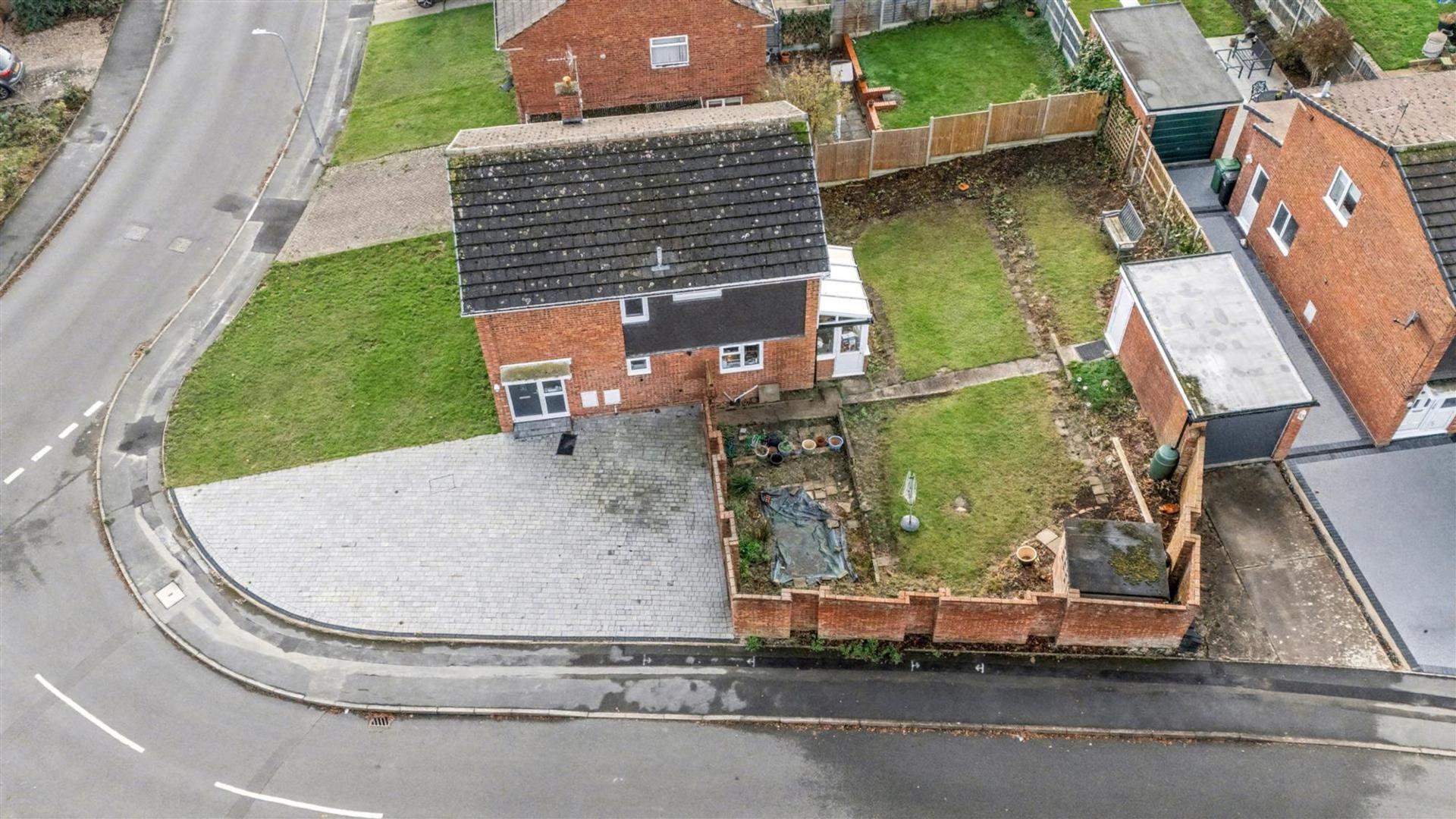 Leading up to the property you are greeted with a paved driveway and a lawned fore garden which is situated on a slightly elevated corner plot. You then have access via pedestrian gate to the rear garden. To the side of the property you then have a single garage with another space for parking.