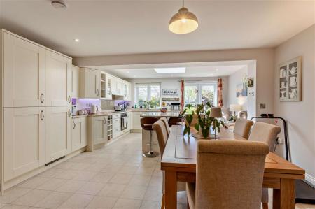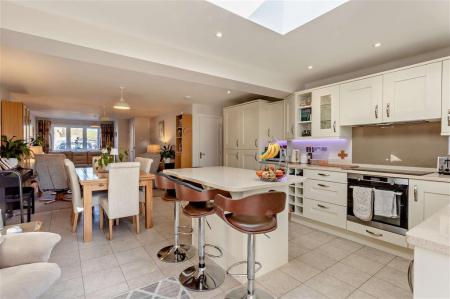 - Impressive 39ft open-plan living, dining and kitchen space with island, lantern roof and log-effect fire