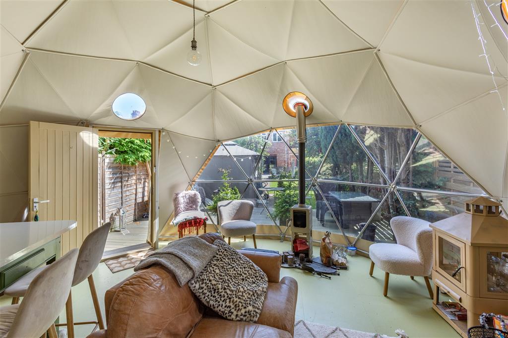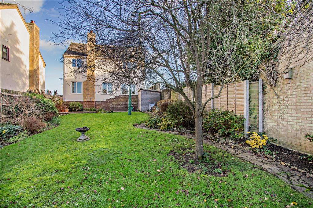 The rear mature garden offers a large sun terrace which has steps that lead down to the large lawn with its well stocked borders.