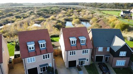Outside there is a a driveway to the front providing parking for three vehicles and access to a single garage. The rear garden is landscaped and enjoys views over the nature reserve.