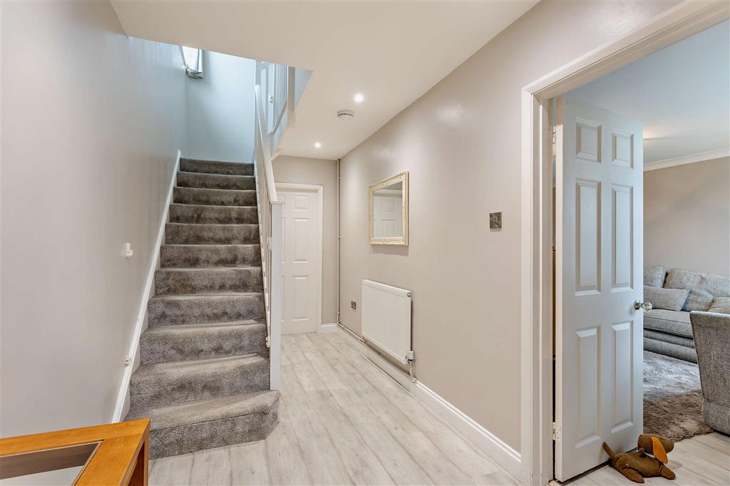Occupying a generous plot, the property enjoys attractive gardens to both the front and rear, offering ideal outdoor space for families.