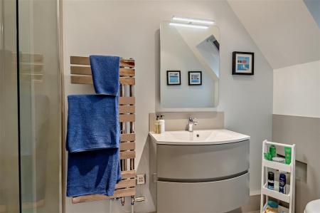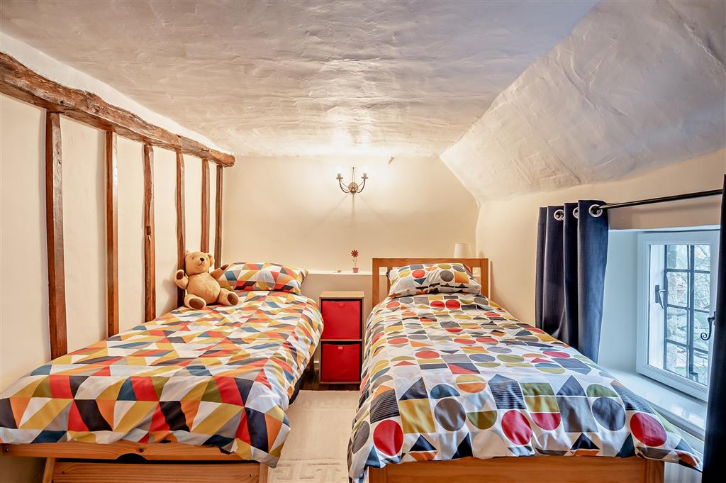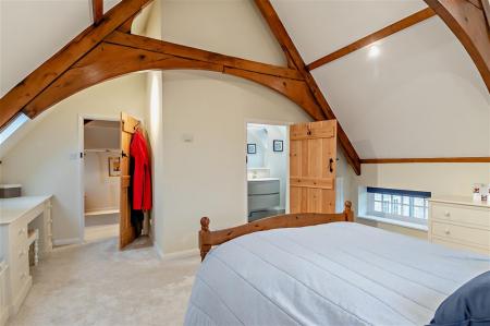 To the first floor are four well-proportioned bedrooms and two bathrooms, with the principal bedroom standing out as a major feature of the home. This beautiful room benefits from a vaulted, beamed ceiling and a luxurious ensuite bathroom, creating a true retreat within the property.