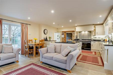 At the heart of the home lies a stunning bespoke country house-style kitchen, breakfast room, and family room, all enjoying delightful views across open countryside. This wonderful living space is perfectly suited to modern family life and entertaining alike. The property also boasts no fewer than three impressive feature inglenook fireplaces, along with two additional reception rooms, offering a wealth of flexible and characterful living accommodation.