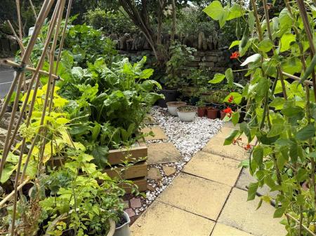 The south facing front garden is not overlooked and has a small raised vegetable bed tucked away behind the front wall, it's a lovely place to drink your morning coffee in the sunshine. There is a secure garden shed, which has storage inside for gardening equipment , cycles and other items. A large larch timber deck gives a great view point from which to enjoy the gardens.