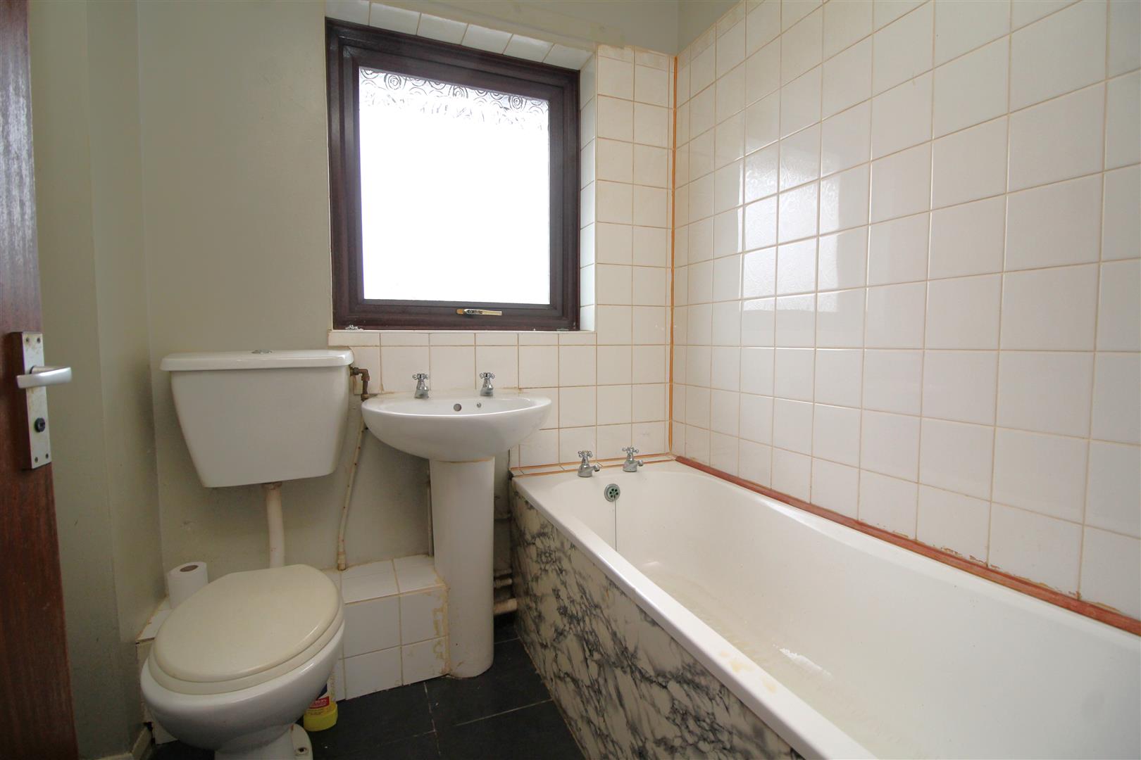 Bathroom - 1.78m x 1.63m (5'10" x 5'4") - Obscure uPVC double glazed window to front, fitted three piece suite with WC, wash hand basin, bath with shower over and splashback tiles.