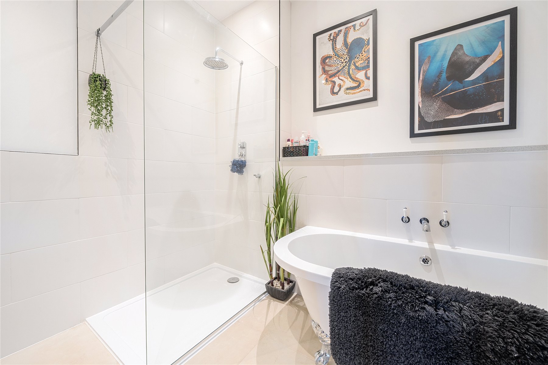 This property is designed with energy efficiency in mind, featuring underfloor heating, an air-source heat pump, and double-glazed windows. A low monthly charge of £100 covers communal ground maintenance and private drainage servicing, ensuring a hassle-free living experience.