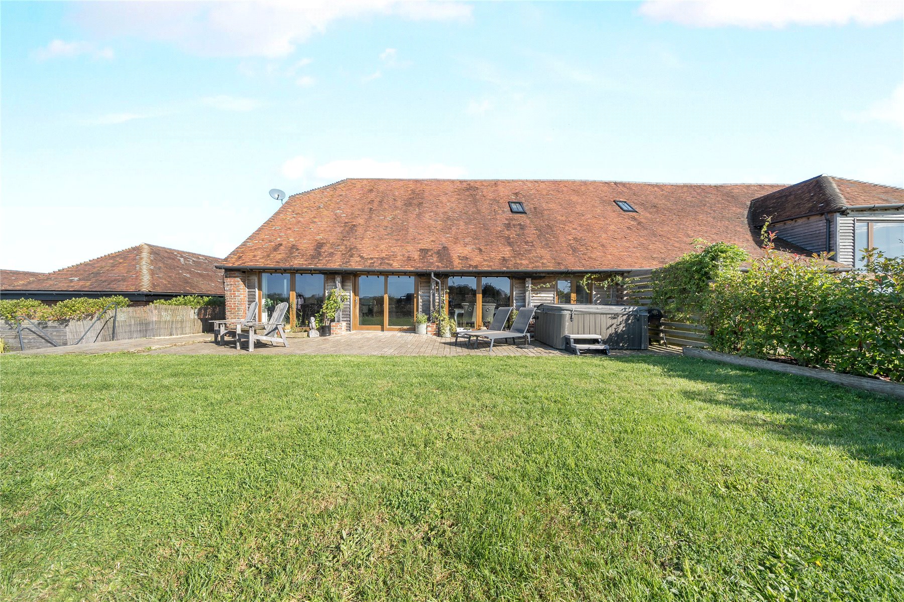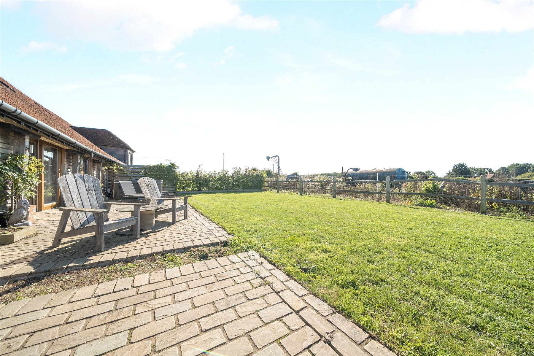 Outside, the property is surrounded by picturesque landscapes, with electric gates (currently being installed) leading to a large driveway at the front of the property, and visitor parking available on a first-come, first-served basis. The south facing rear garden provides a peaceful retreat with lush lawns and a paved terrace ideal for al-fresco dining, offering stunning views of the surrounding farmland and the South Downs.