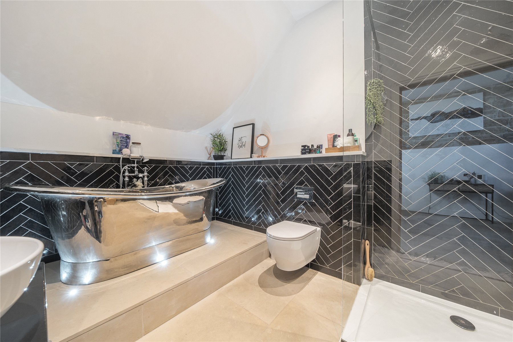 The property boasts two spacious bedroom suites, both suites include a free standing bath and shower. While the Master bedroom boasts a large walk-in wardrobe. Each suite is appointed with modern fittings and stylish fixtures. Vaulted oak ceilings and Indian sandstone floors, complemented by underfloor heating, lend a sophisticated yet timeless feel, combining the character of a period home with the conveniences of a new build. There are two further double bedrooms on the lower ground floor. Two bonus loft rooms can be accessed via a spiral staircase from the utility room, these are fantastic rooms within the eaves of the property offering versatility of uses.