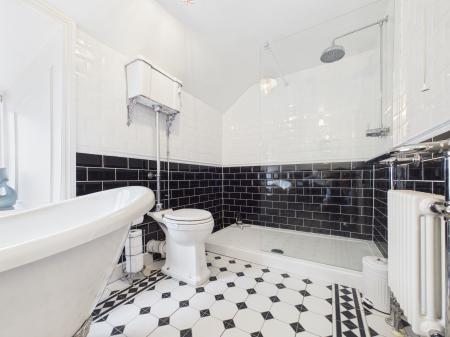 - Two Bathrooms: Ground-floor shower room plus a main bathroom with a freestanding bath