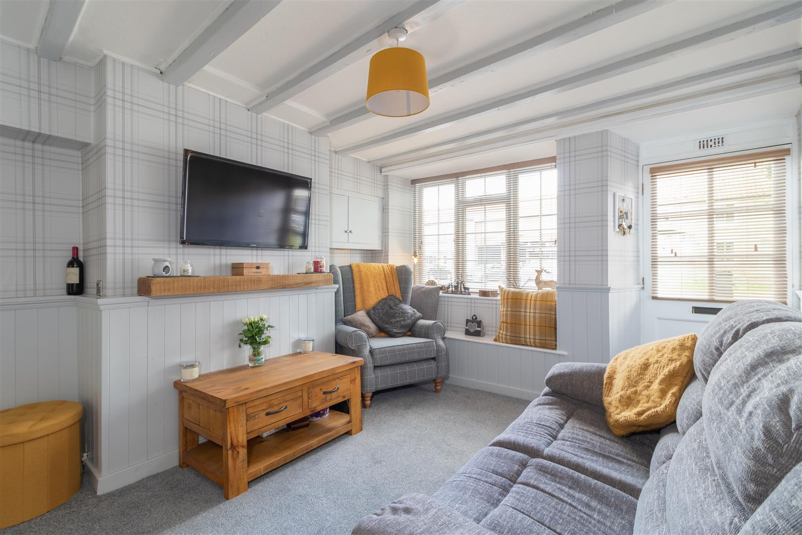 3.42 x 4.56 max (11'2" x 14'11" max) - Double glazed wooden window to front aspect, window seat, column radiator, blocked up fireplace (can be reinstated) with gas connection point, tongue and groove panelling, dado rail, exposed beams, power points, TV point, storage cupboard for consumer unit.