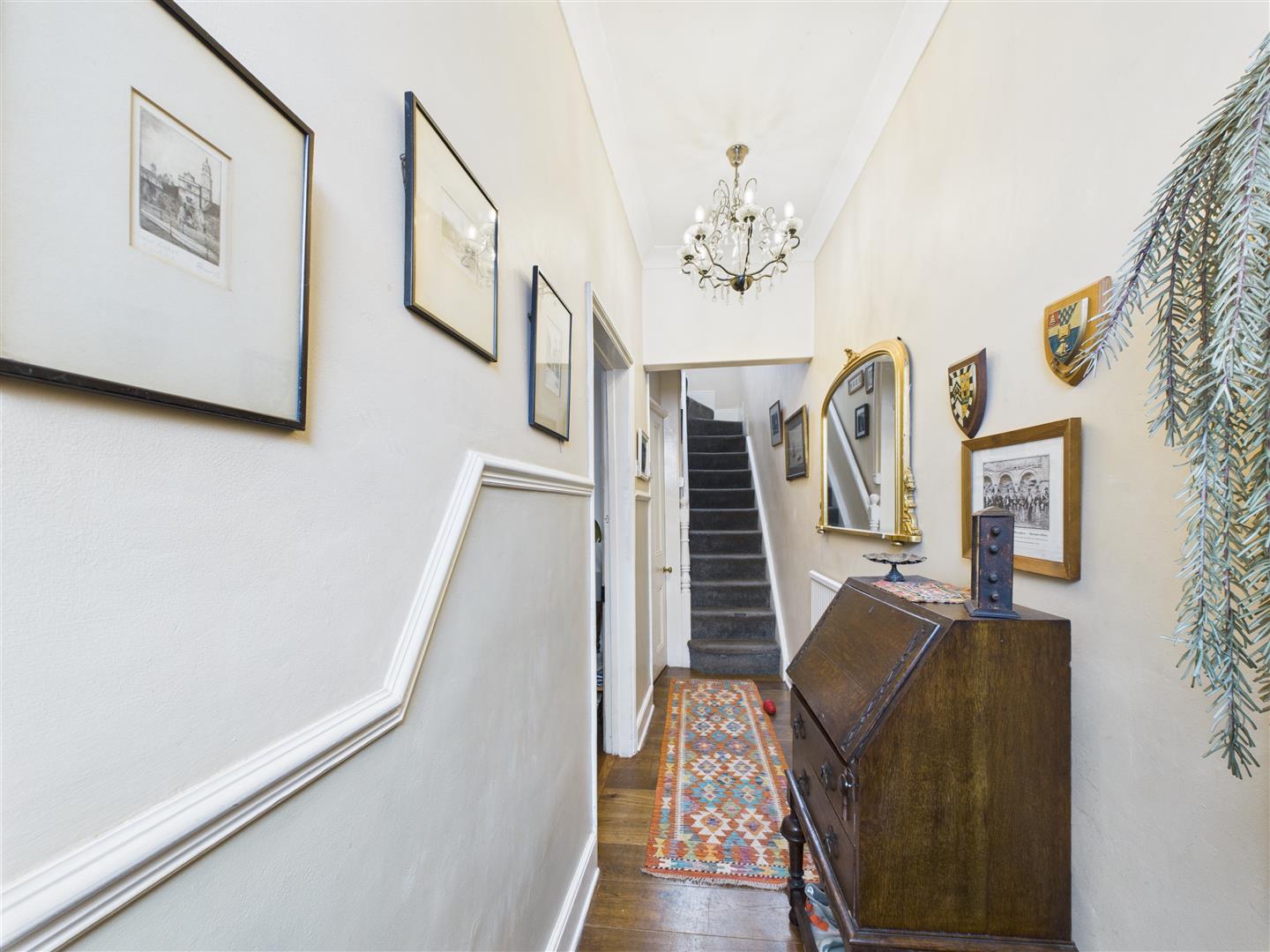 On the first floor, bedroom one is a generous size with abundant natural light thanks to two sash windows. The room also features a charming fireplace with a wood-burning stove, adding to its inviting and cosy appeal. The family bathroom features oak flooring, along with a combination of wood panelling and part-tiled walls, creating a serene, yet practical space. The second floor comprises of a large and bright second bedroom, featuring two large fitted cupboards for storage, along with a Velux window that lets in even more natural light, creating a cheerful, airy space. The third bedroom can be used as either a third bedroom or a versatile home office which can be easily adapted to your needs.