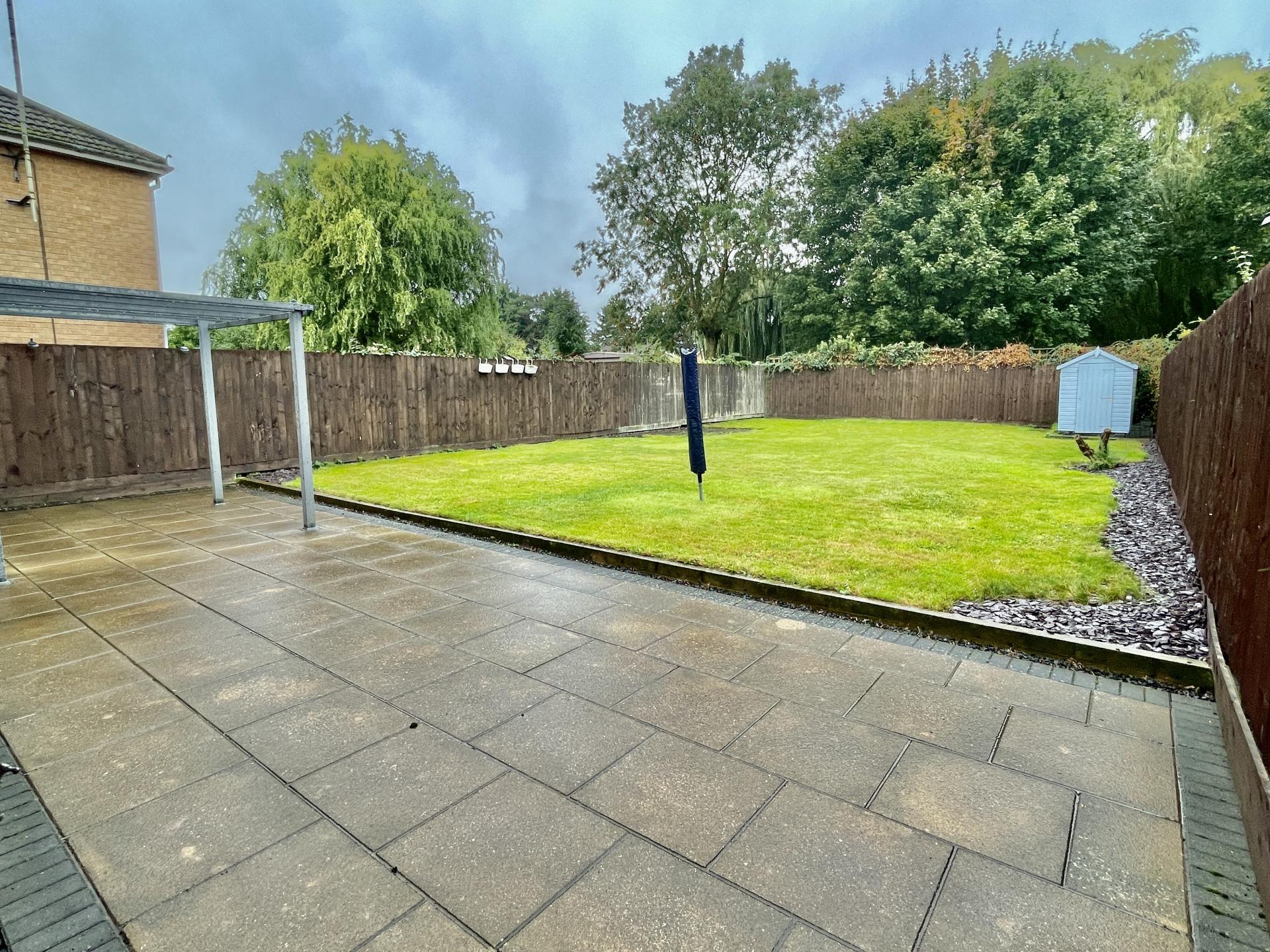 REAR GARDEN Extensive patio area, cold water tap, mainly laid to lawn with gravelled borders, fenced boundaries, wooden garden shed.