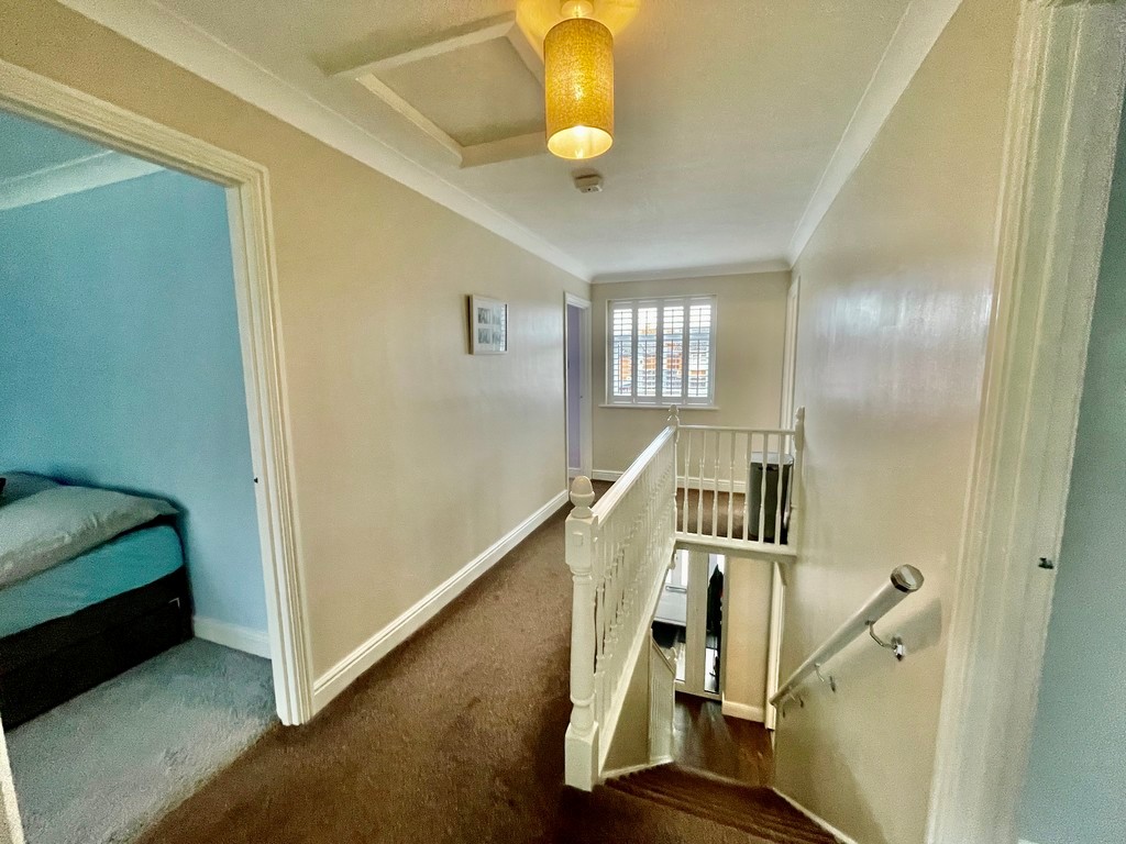 FIRST FLOOR GALLERIED LANDING 6' 8" x 16' 2" (2.04m x 4.95m) UPVC double glazed window with fitted shutters to the front elevation, coved and textured ceiling, centre light point, access to loft space (with lighting), smoke alarm, storage cupboard off housing hot water cylinder with slatted shelving, door to: