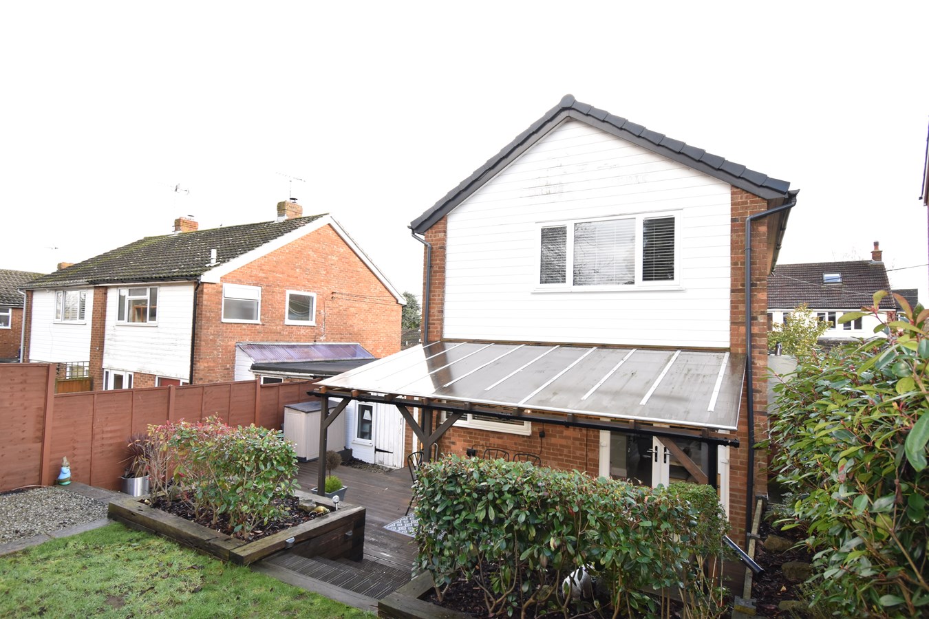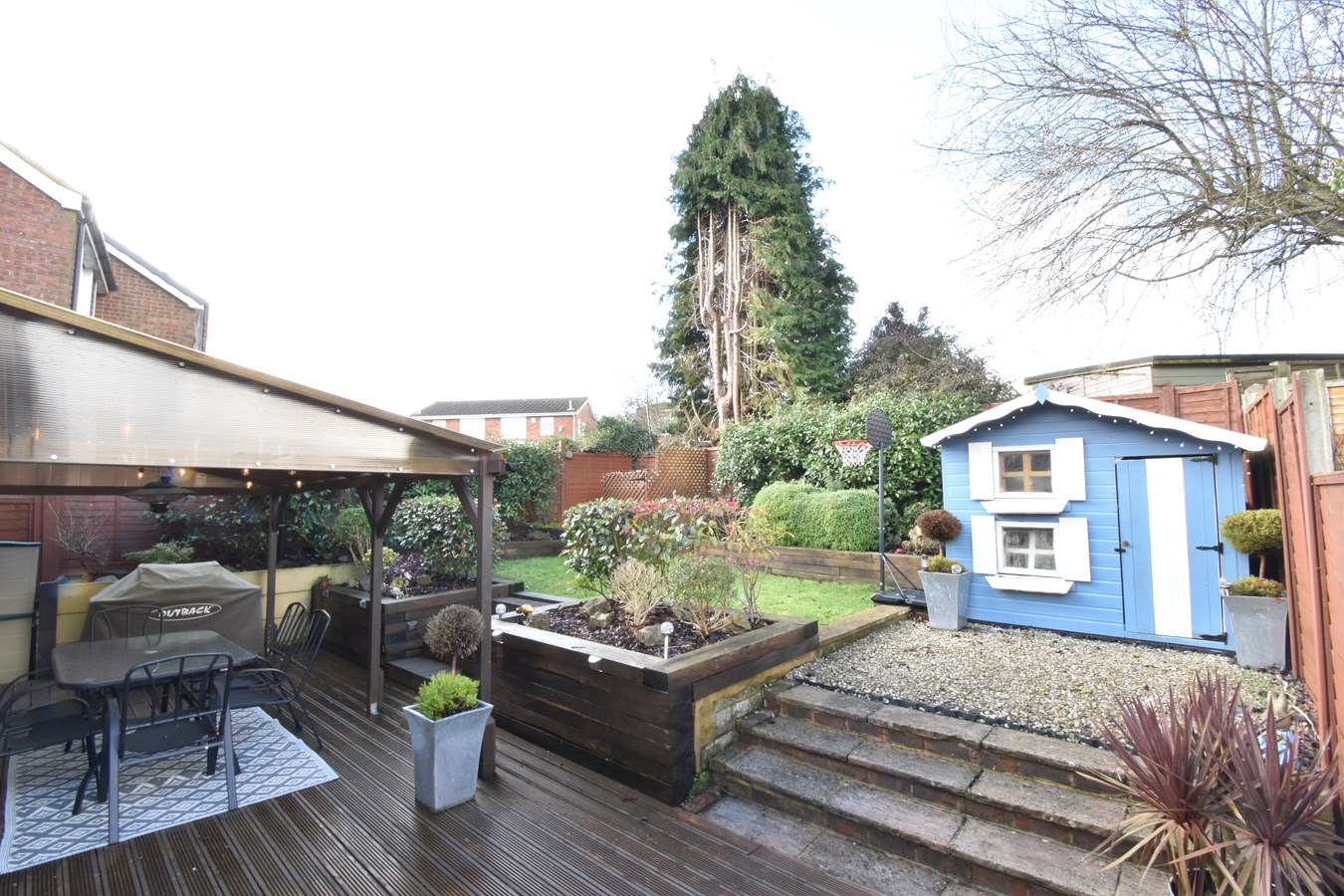 To the side of the house is a driveway leading to the garage and an additional shingled parking area to the front of the property. To the rear is an enclosed 35ft landscaped garden with a decking area and beautiful pergola. There are steps up to the main body of the garden with raised beds.