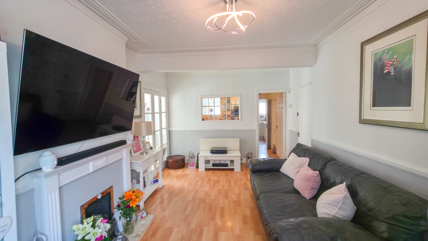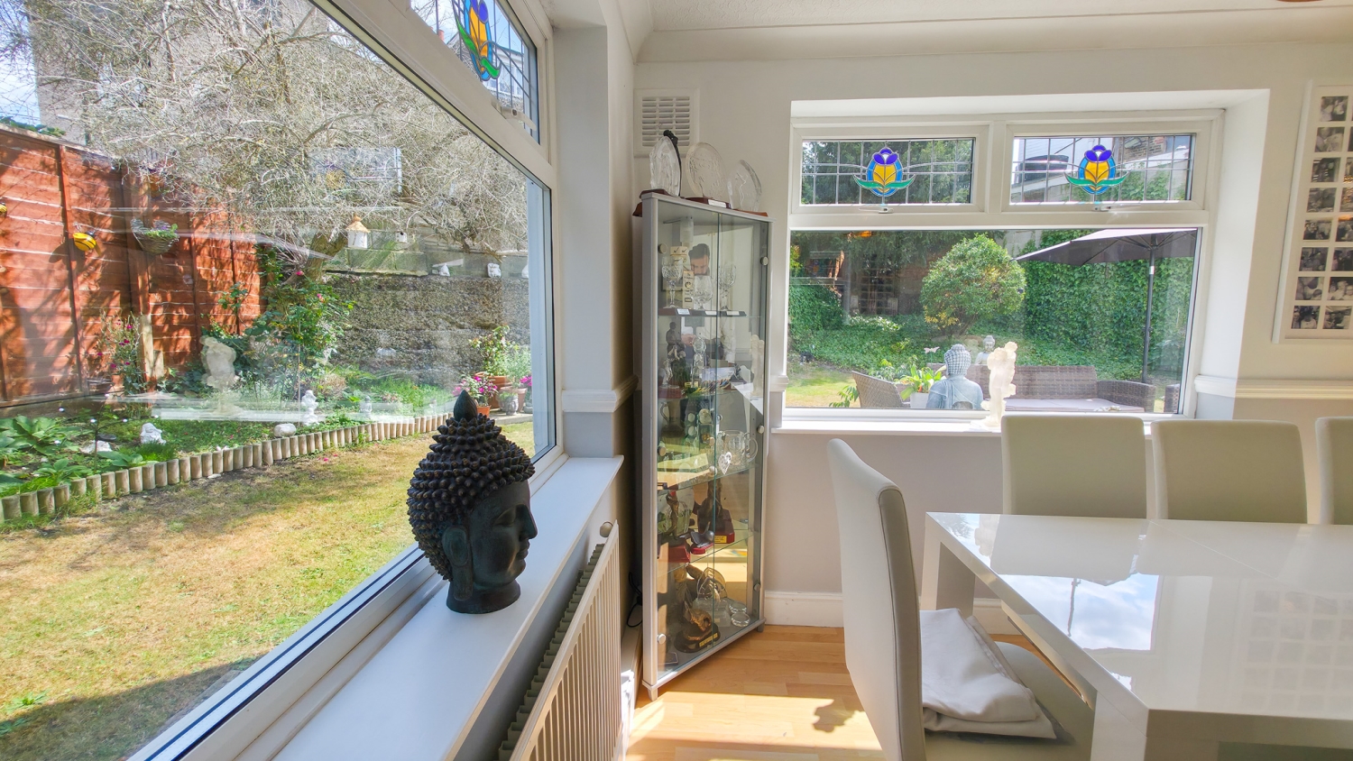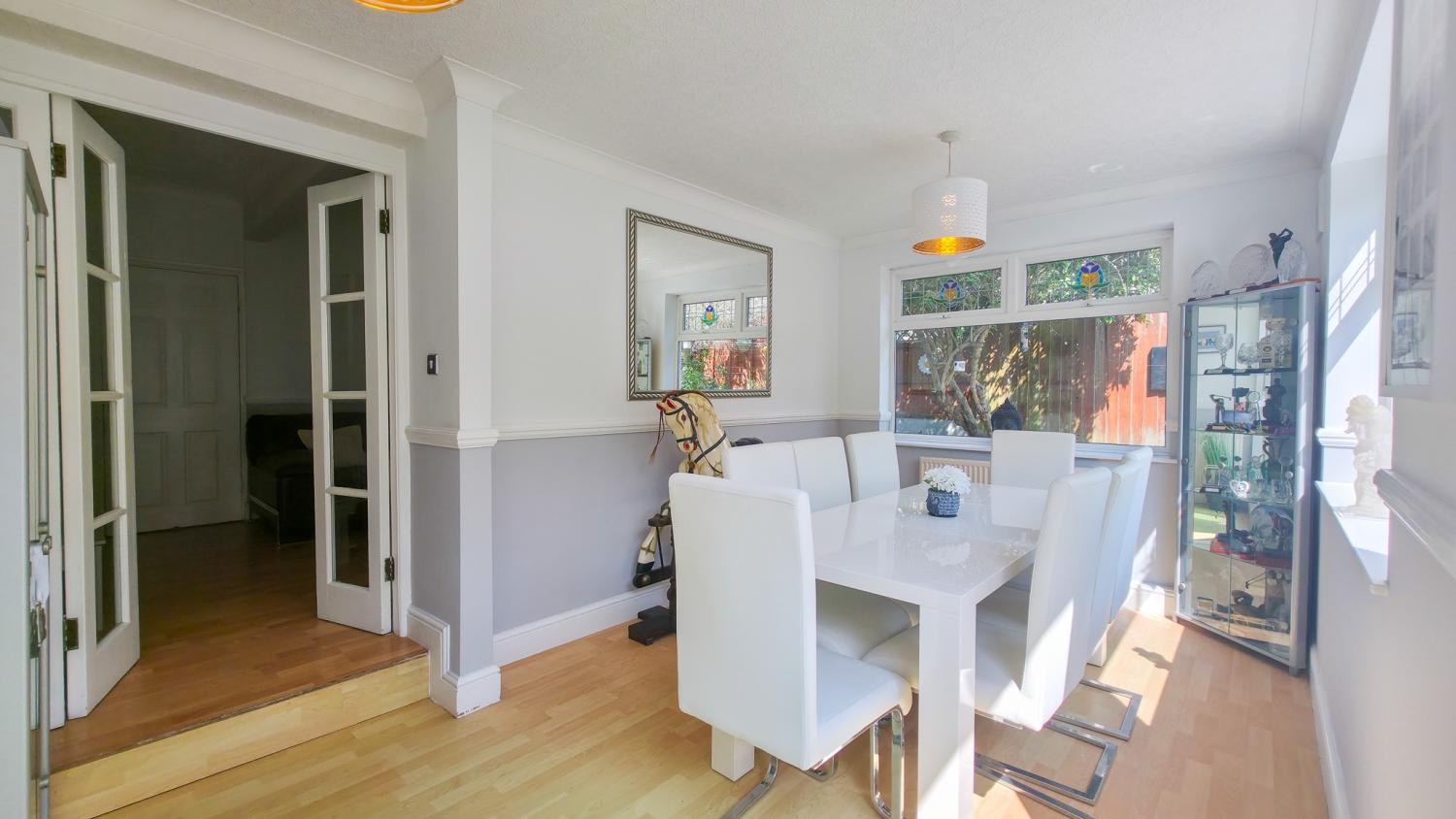 Set across two well-planned floors, the home welcomes you into a bright hallway leading to a separate formal living room, ideal for relaxation or entertaining. To the rear, a spacious dining room overlooks a beautifully maintained private garden, creating a calming setting for family meals and social gatherings.