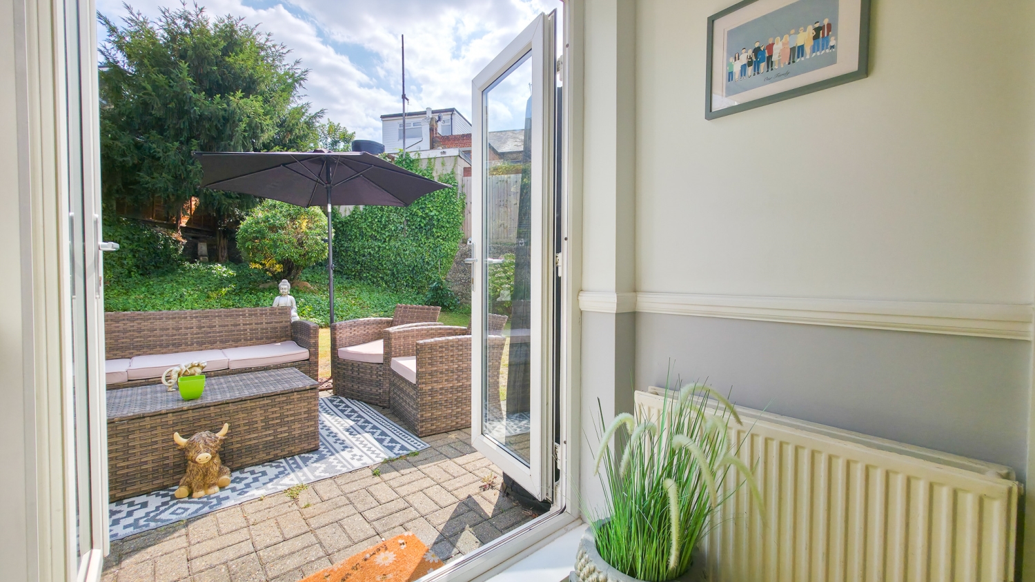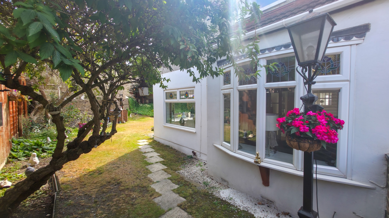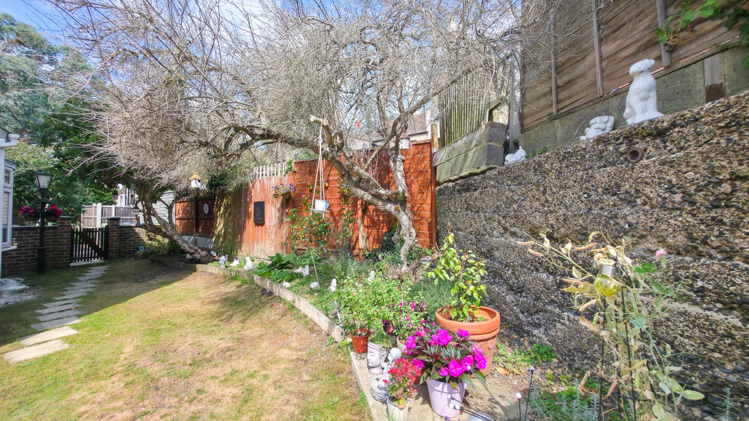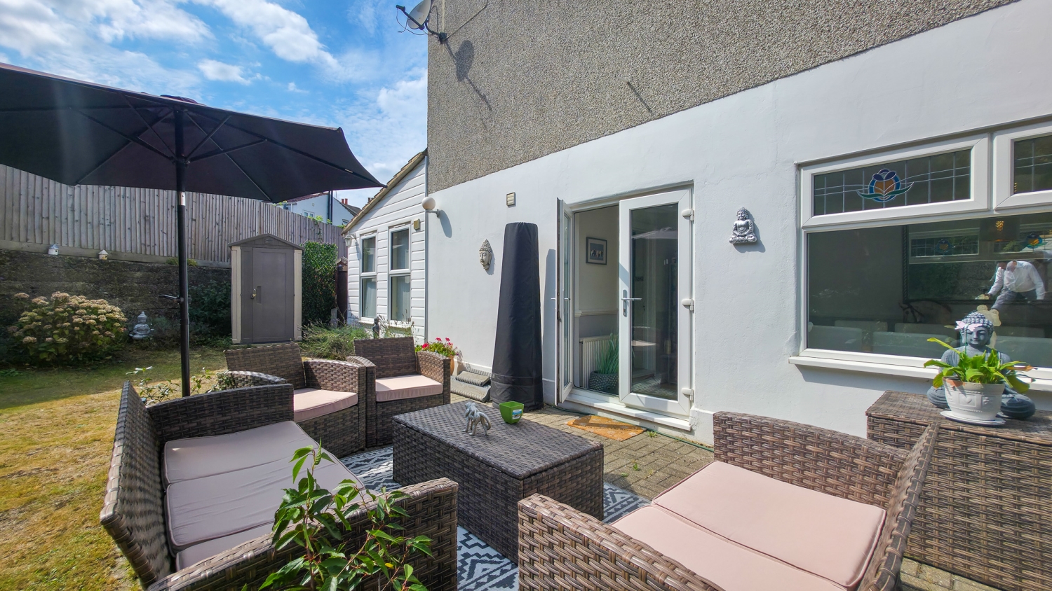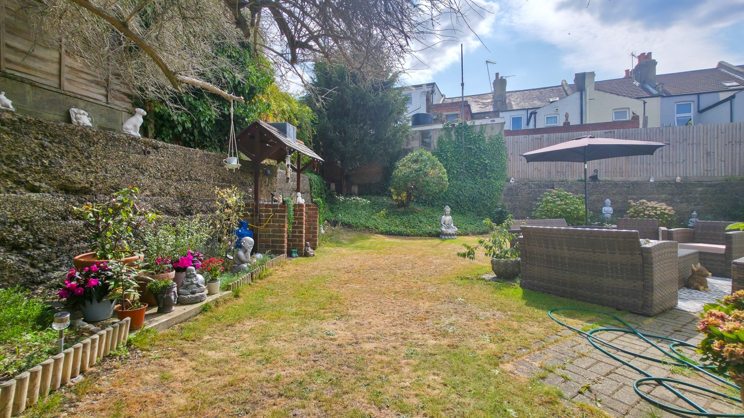 The rear garden is a true highlight — peaceful and green, it has been lovingly maintained and provides the perfect spot for outdoor dining, play, or simply unwinding after a long day.