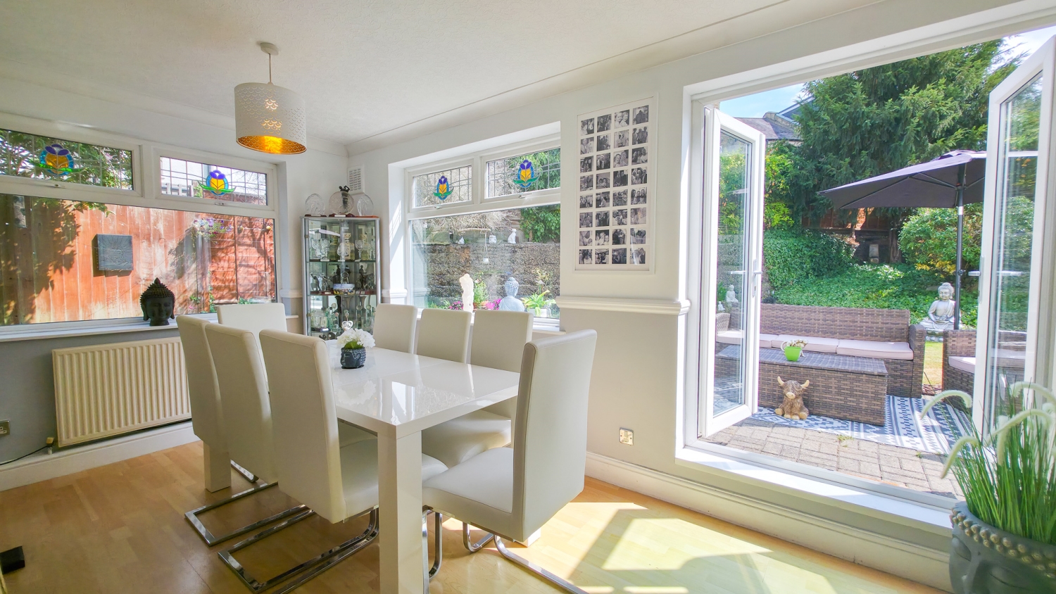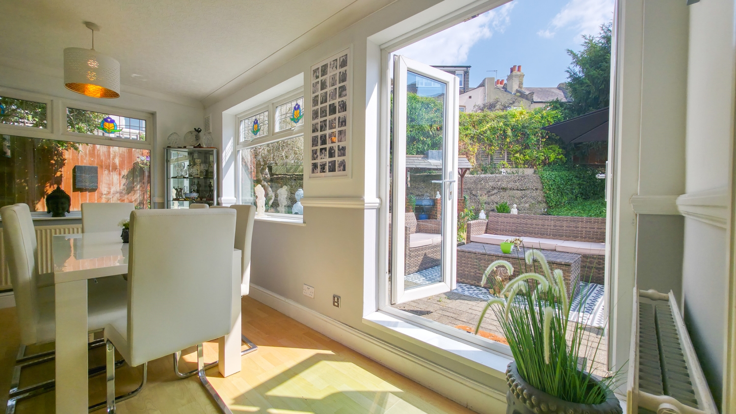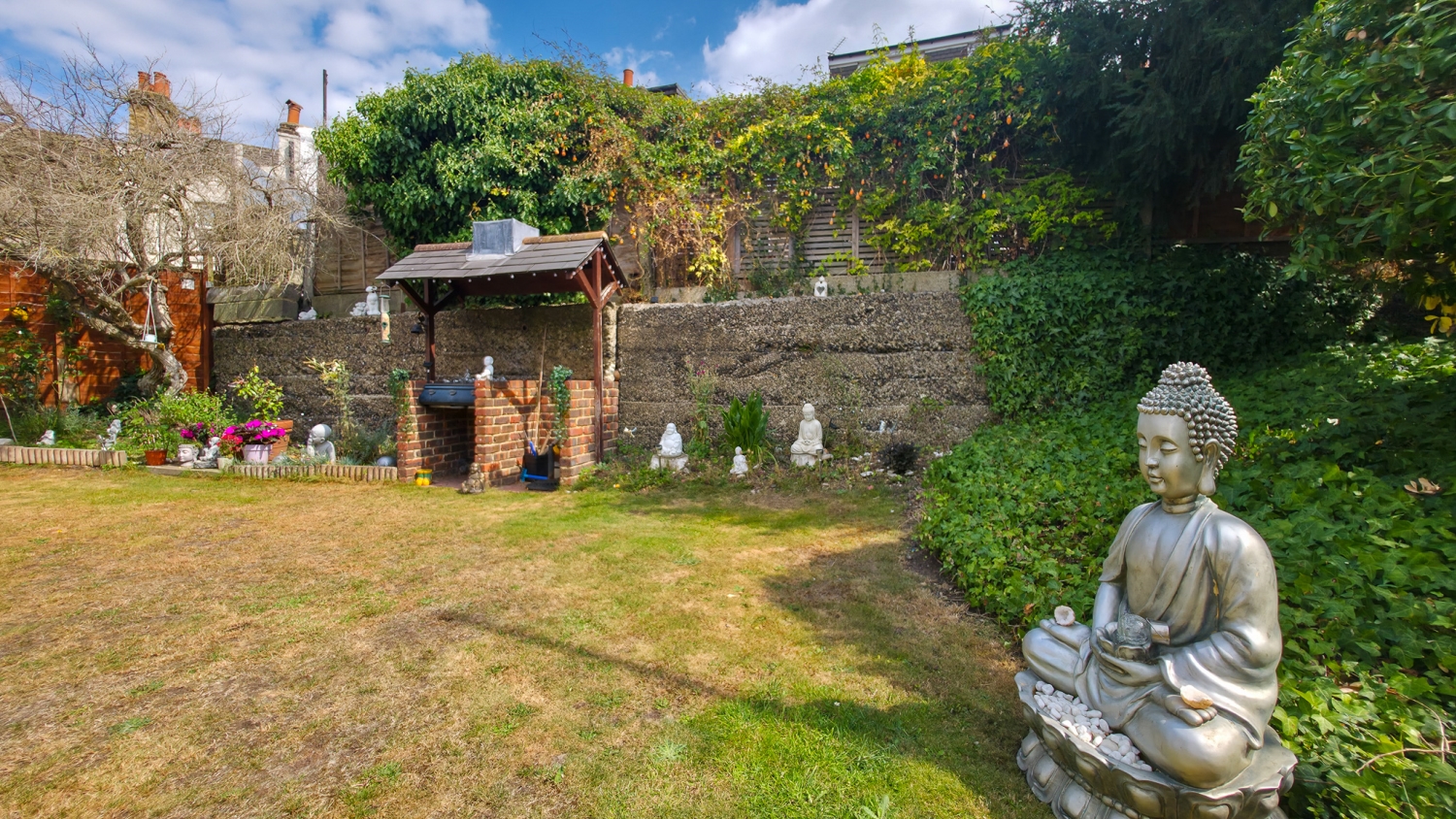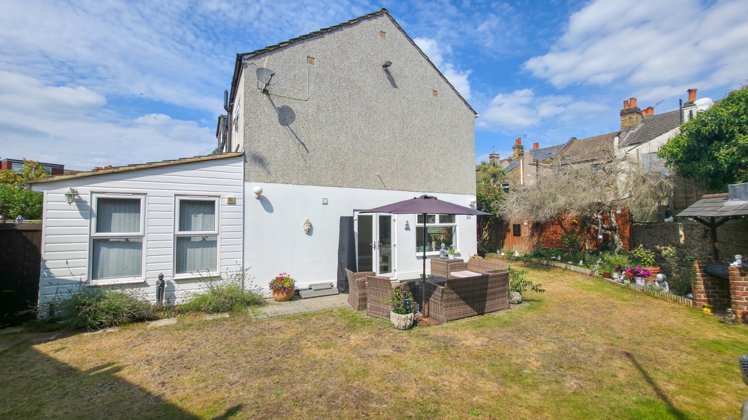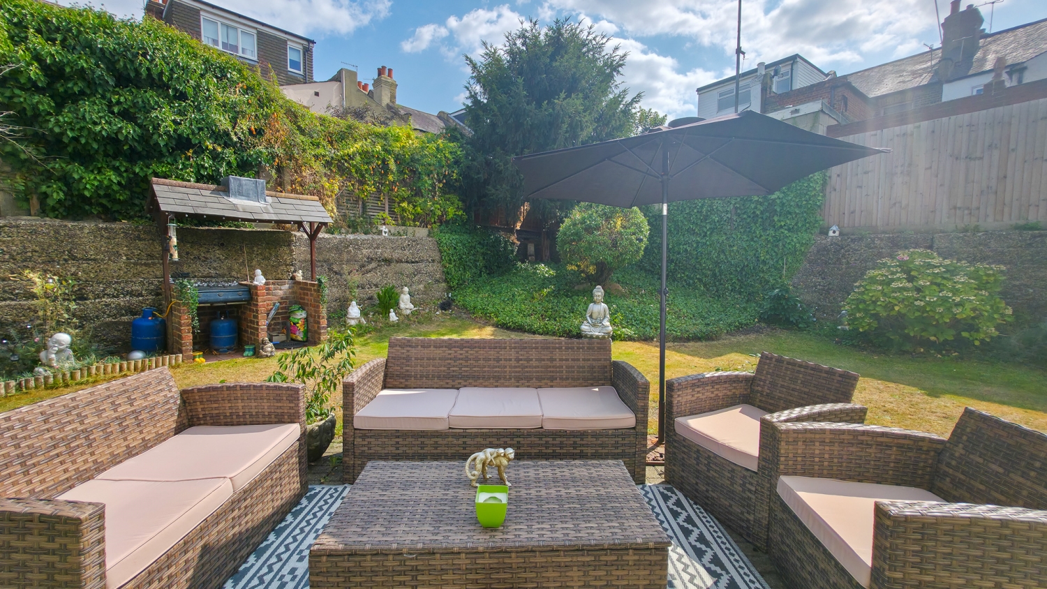 The rear garden is a true highlight — peaceful and green, it has been lovingly maintained and provides the perfect spot for outdoor dining, play, or simply unwinding after a long day.