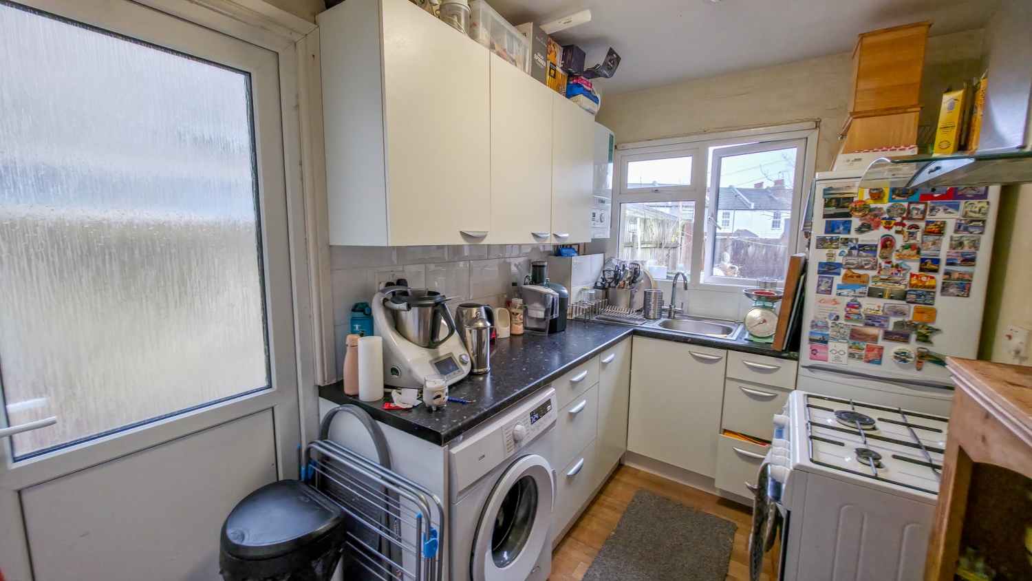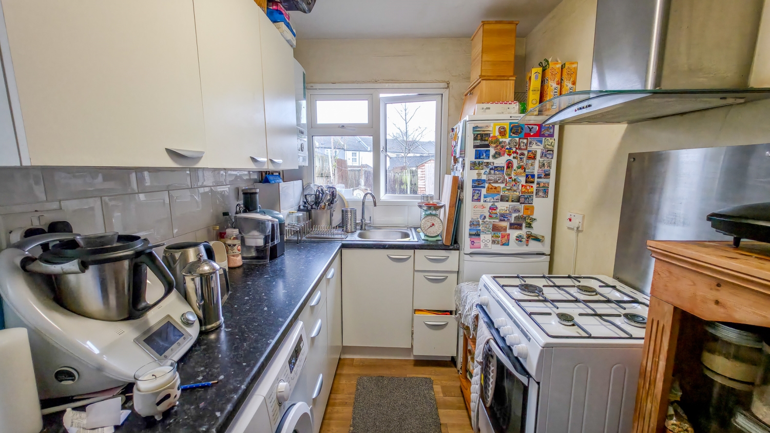 Upon entering, you are welcomed by a bright lounge that flows into a separate dining room, creating a flexible space for relaxing or entertaining. The fitted kitchen offers good workspace and leads out to the rear garden.