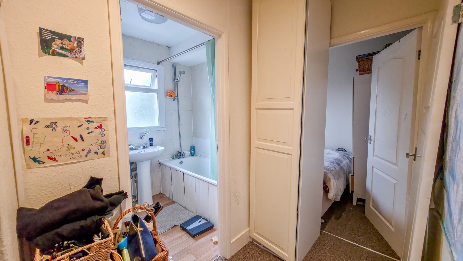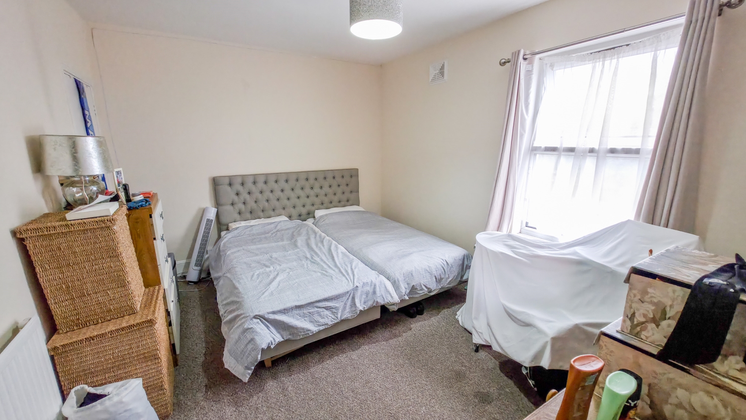 Upstairs, the home provides two bedrooms—one spacious double bedroom and one single bedroom—alongside a traditional upstairs bathroom.