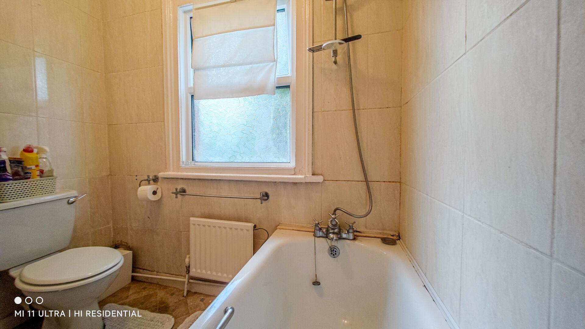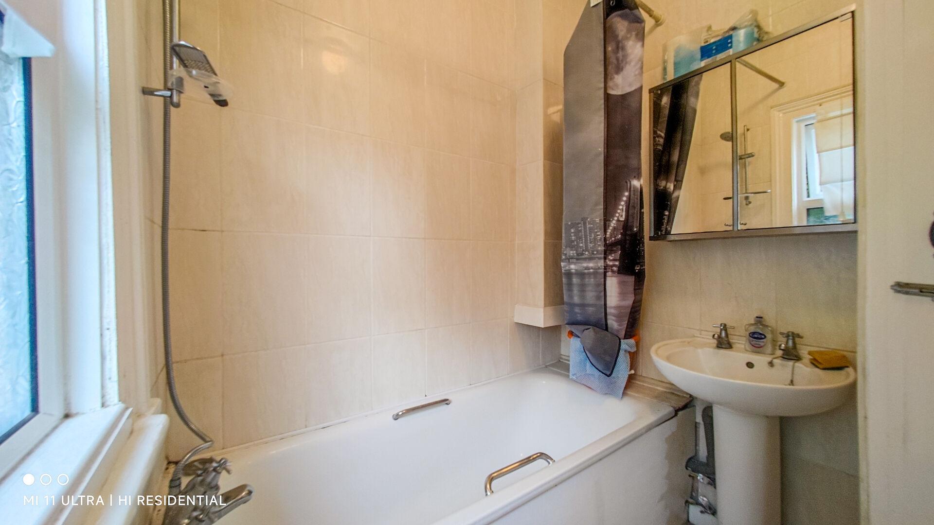 The interior of the flat is presented to a high standard, featuring a bright and airy 14ft lounge with double glazed windows to the front. These large windows ensure the room is bathed in natural light, enhancing the overall feel of space and comfort. The kitchen is well-fitted with modern amenities including a built-in oven, hob, and filter hood, alongside space for additional appliances. The bedroom is a comfortable double, boasting fitted carpets and a serene atmosphere for relaxation. Completing this appealing flat is a modern, fully tiled three-piece bathroom suite equipped with a shower above the bath.