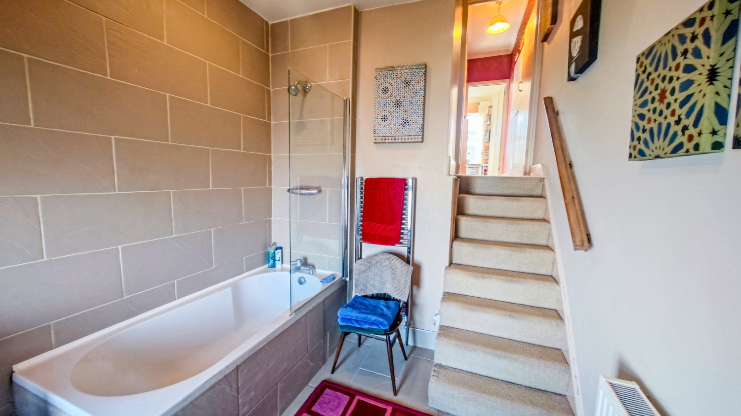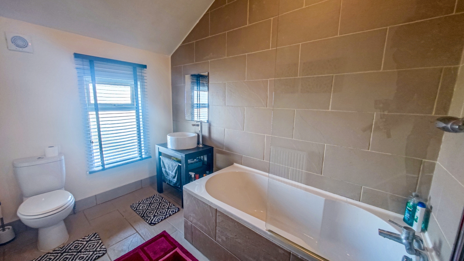 Upstairs Bathroom: Modern and functional, catering to the needs of a busy household.