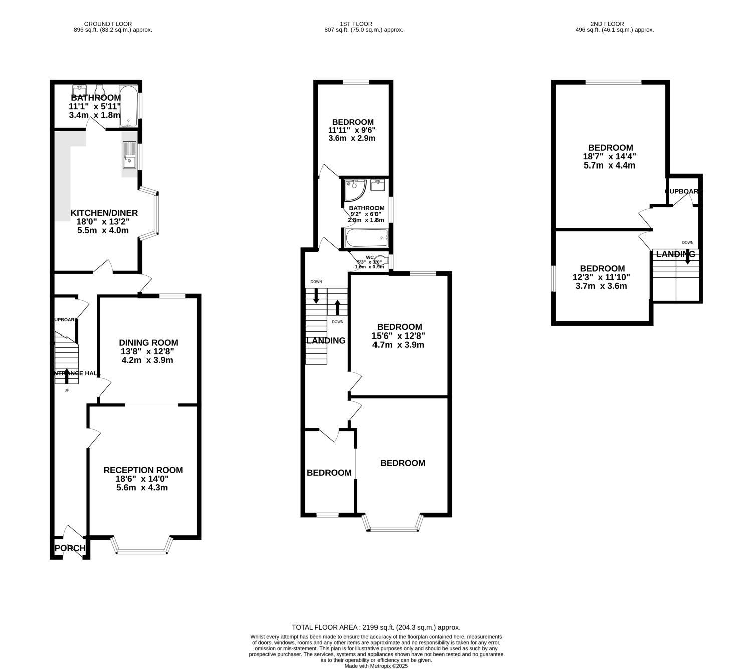 The first floor offers three good-sized bedrooms, a second bathroom, and a separate WC, providing convenience for busy households. On the top floor, you'll find two further bedrooms, offering flexibility for use as additional bedrooms, a home office, or hobby spaces.