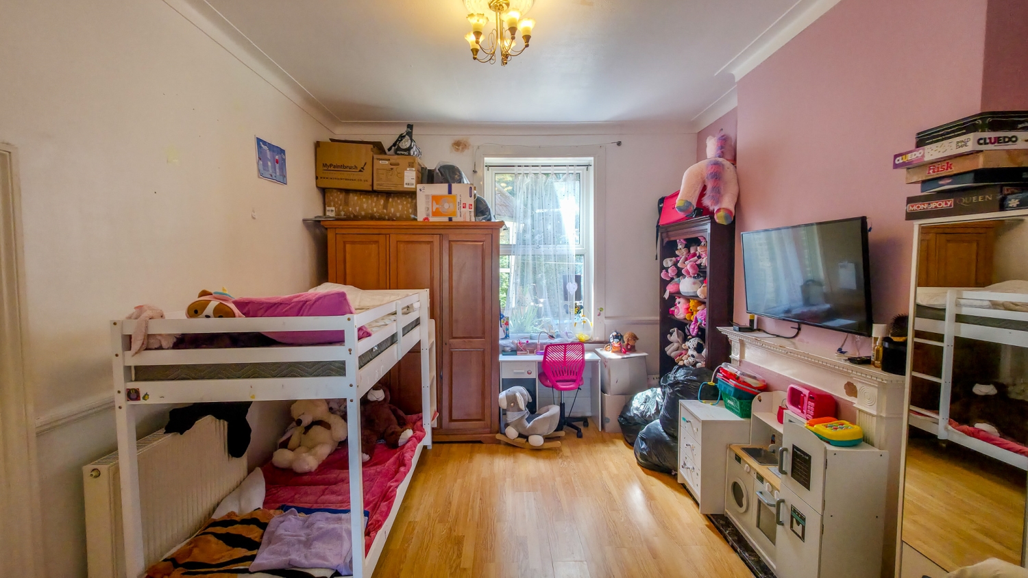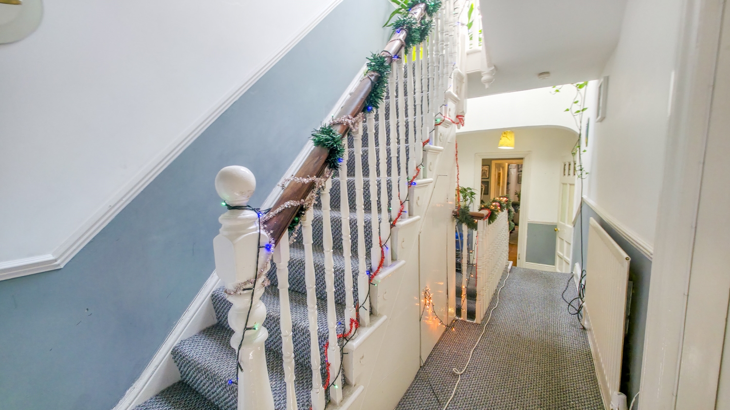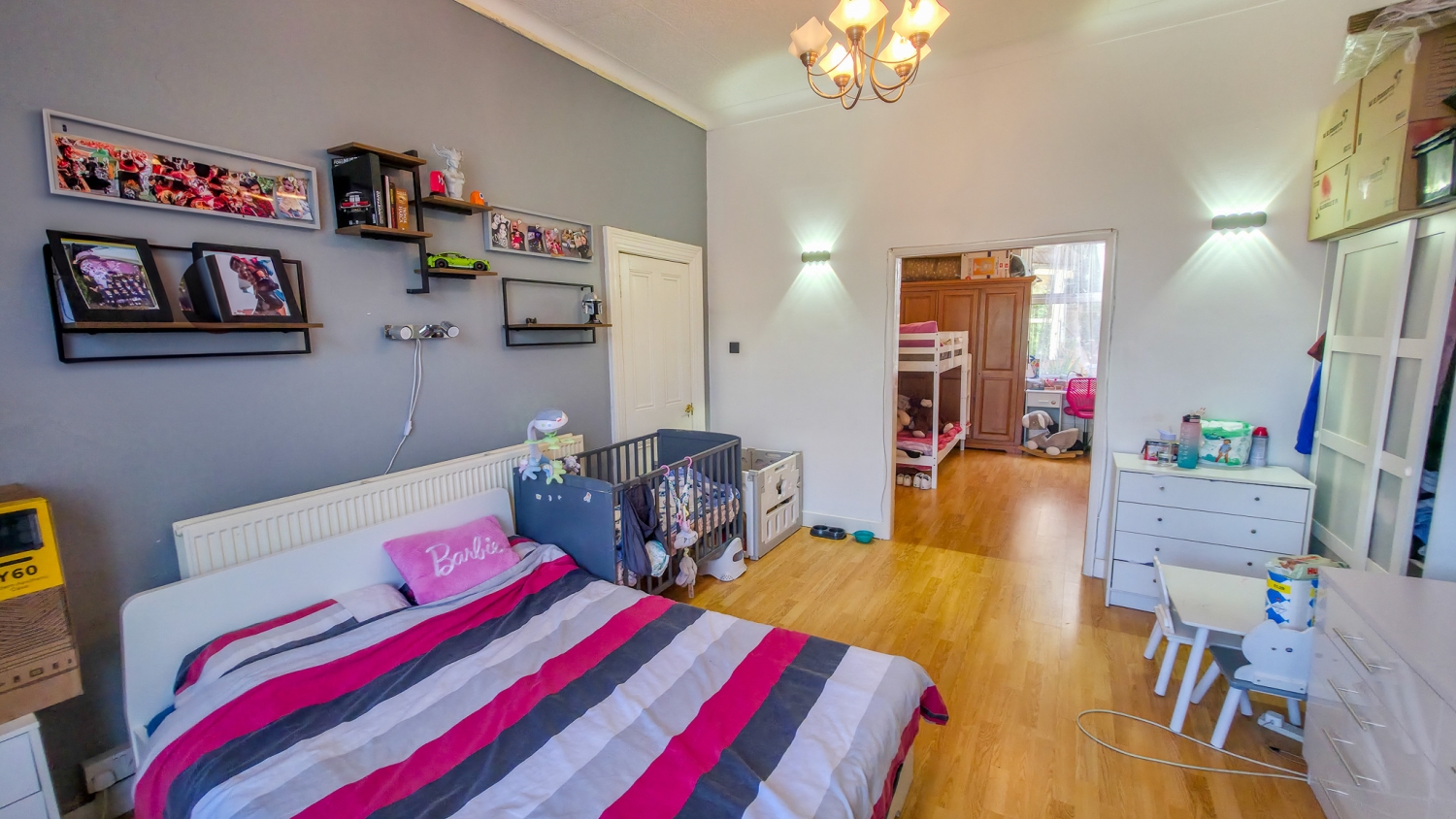 Offering generous accommodation set across three levels, the property is perfect for large families or buyers seeking ample space with period charm. The ground floor comprises a welcoming entrance hall, a spacious 30ft through lounge ideal for entertaining, and a bright kitchen/diner with direct access to the rear garden which is arranged over 3 levels and also having an outhouse. A well-sized bathroom completes the ground floor.