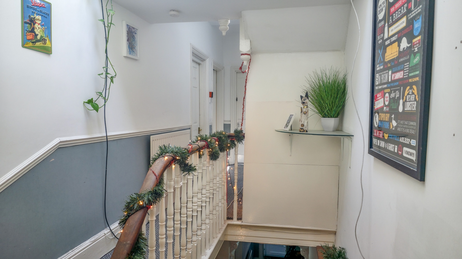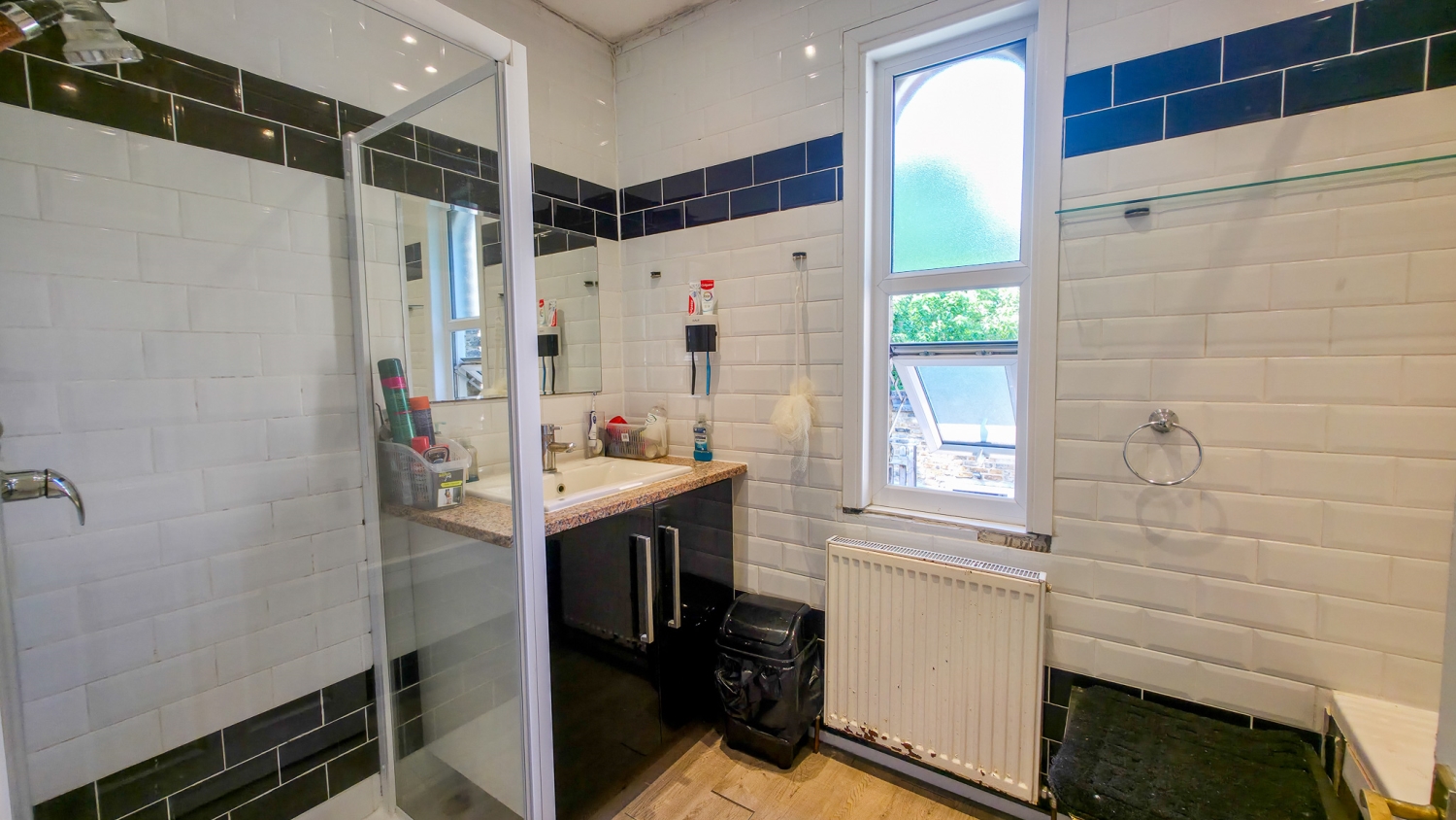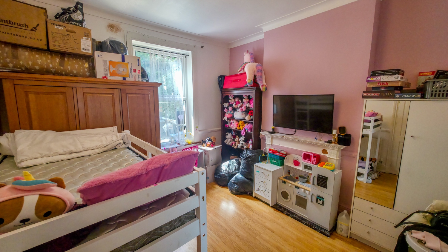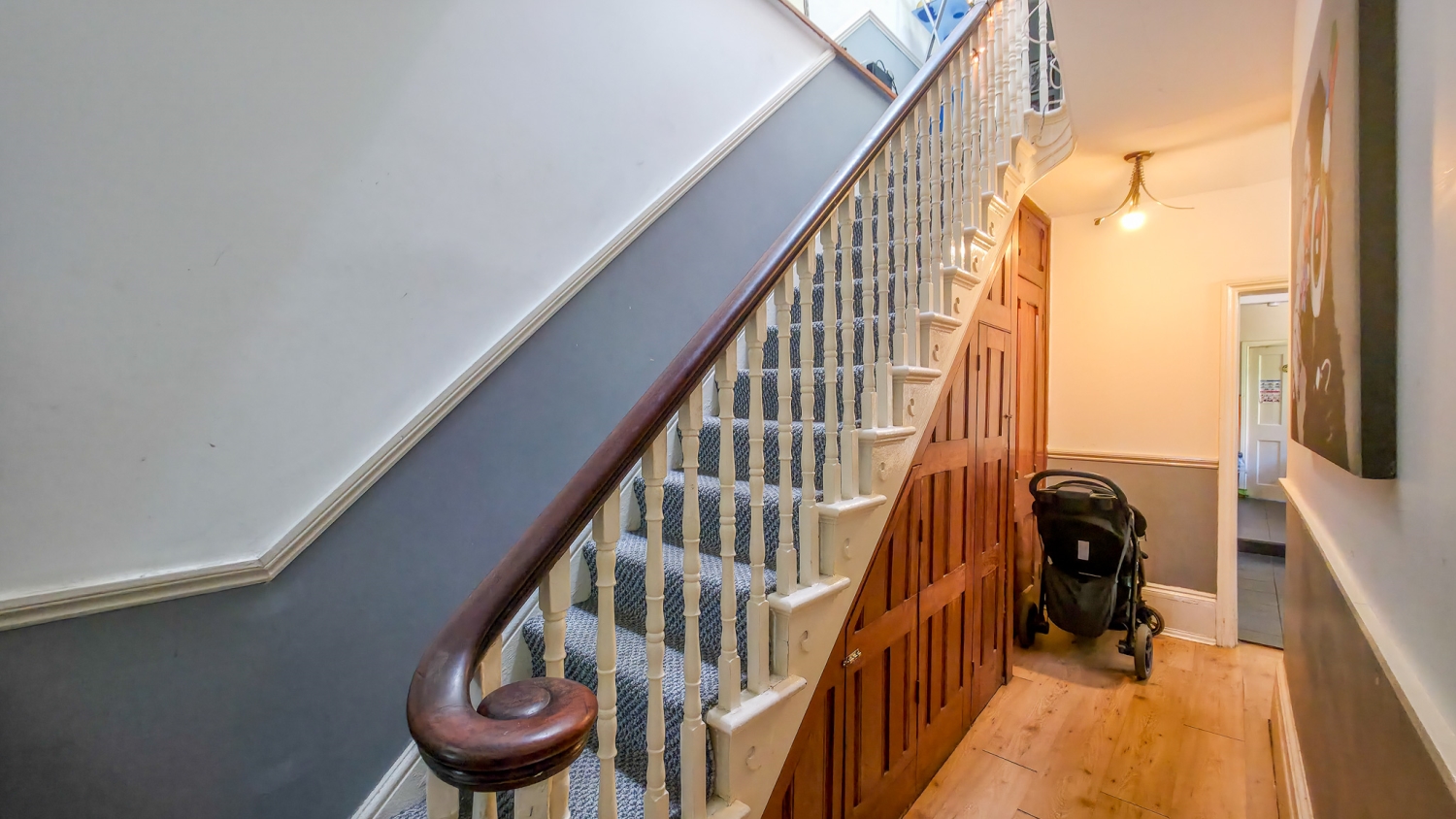 Offering generous accommodation set across three levels, the property is perfect for large families or buyers seeking ample space with period charm. The ground floor comprises a welcoming entrance hall, a spacious 30ft through lounge ideal for entertaining, and a bright kitchen/diner with direct access to the rear garden which is arranged over 3 levels and also having an outhouse. A well-sized bathroom completes the ground floor.