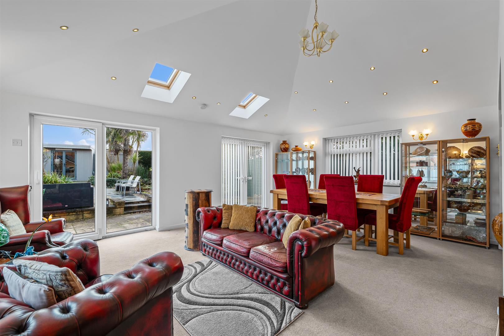 Garden/Family Room - 5.99m x 4.50m (19'8" x 14'9") - A well proportioned, versatile, reception of generous proportions being large enough to accommodate both a living and dining area, having an attractive pitched ceiling with inset skylights as well as double glazed windows to two elevations, further French doors and sliding patio door leading into the rear garden with an open aspect beyond. In addition there are two central heating radiator and further open doorway returning to: