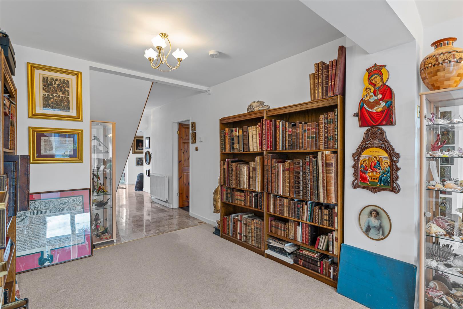 Inner Hallway - 4.17m x 2.29m (13'8" x 7'6") - Having continuation of the marble tiled floor, central heating radiator, spindle balustrade staircase rising to the first floor landing with useful under stairs alcove beneath and, in turn, further doors leading to: