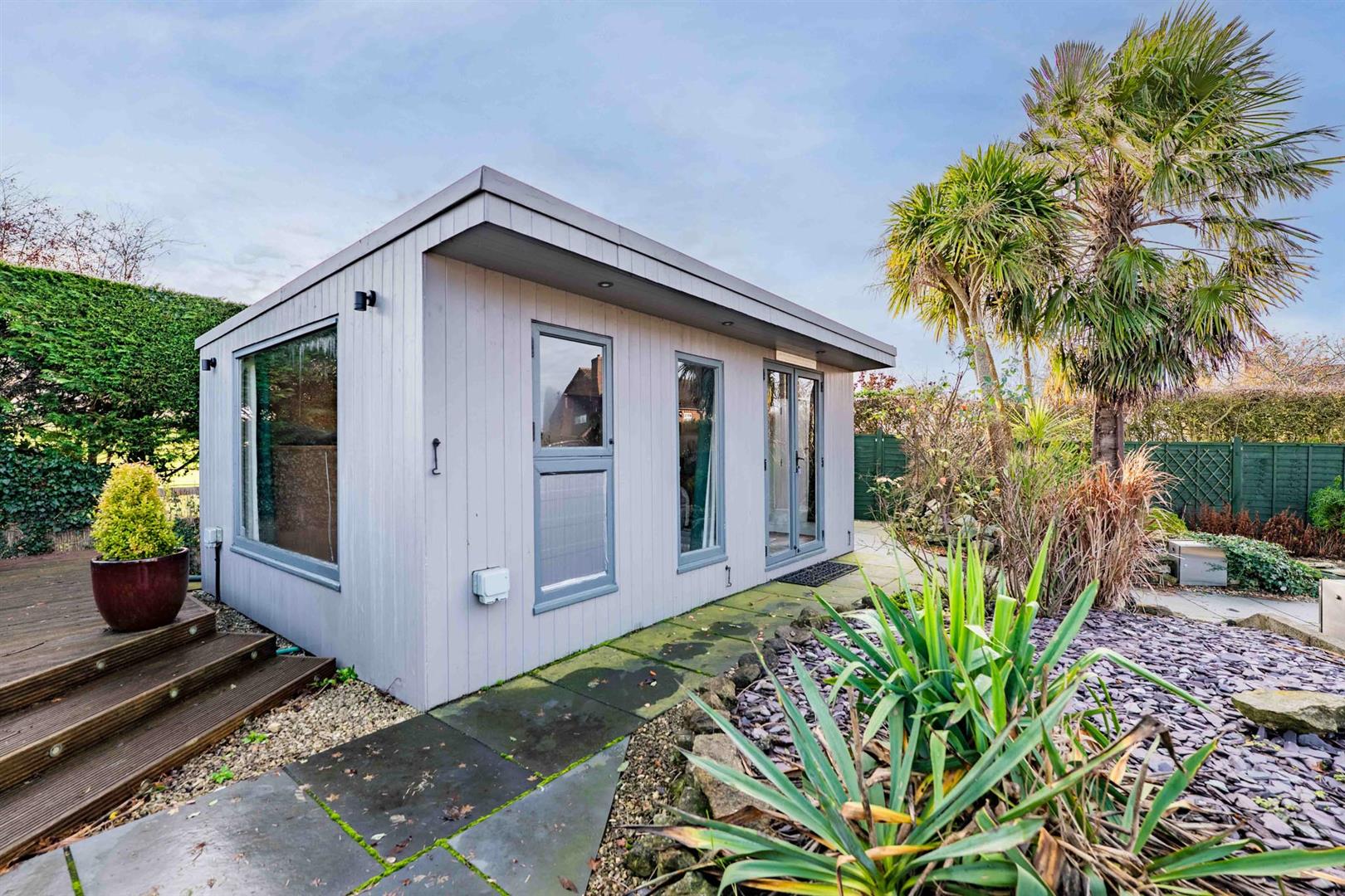 As well as the internal accommodation the property occupies a delightful, landscaped, level plot with a considerable frontage providing an excellent level of off road parking and integral garage. To the rear of the property is an established, landscaped, southerly facing, enclosed, garden with paved stone chipping seating areas, a central ornamental pond and a decked area at the foot which affords delightful views across adjacent fields. In addition, located to the foot of the garden, is a versatile timber cabin/studio with adjacent storage which provides a wonderful outdoor reception space or would make an excellent home office.