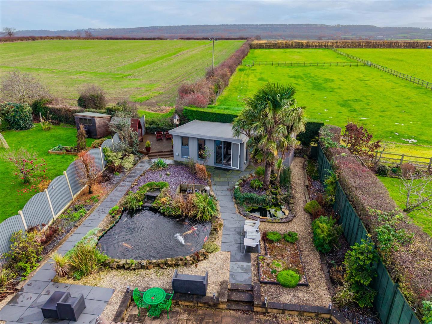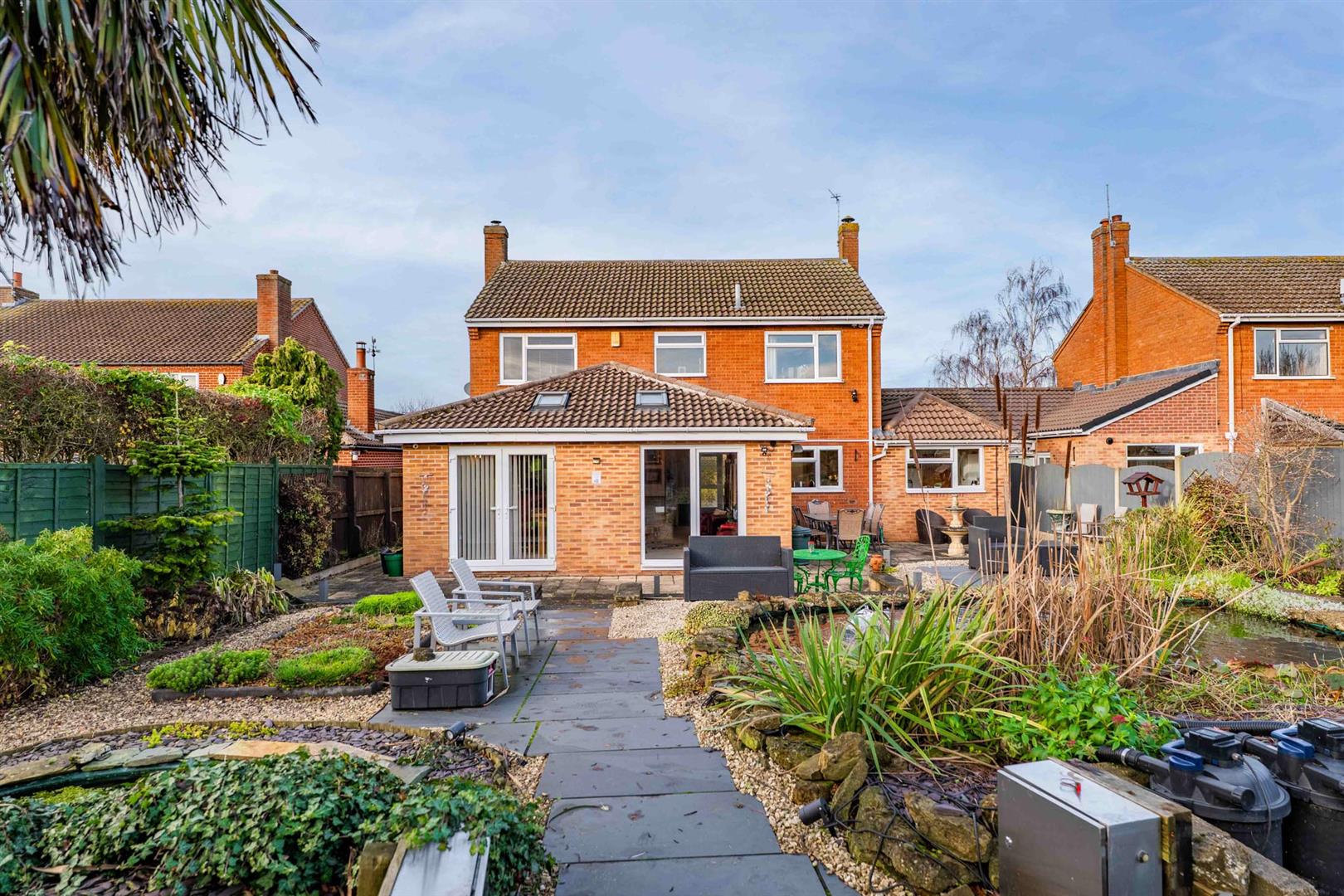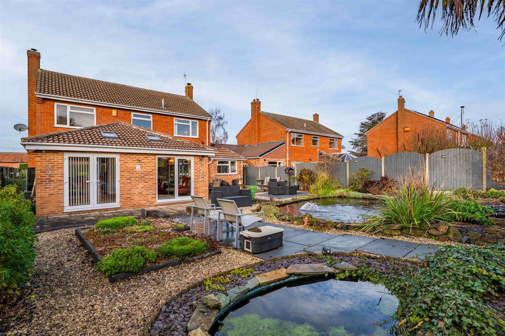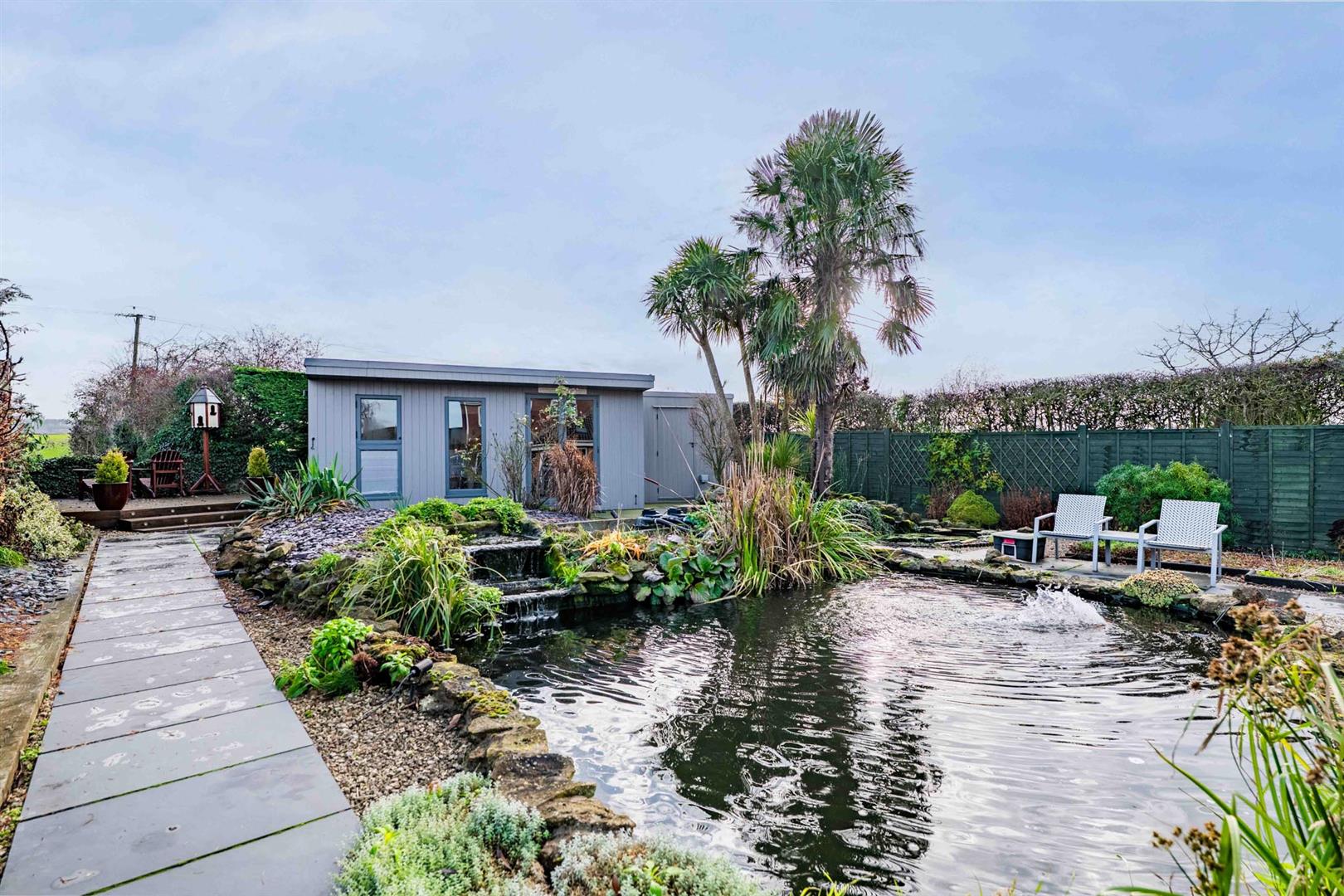 Exterior - The property occupies a fantastic position within this pretty Vale of Belvoir village, occupying a central position on its generous plot which approaches 1/5 of an acre. A considerable frontage provides more than ample off road parking for numerous vehicles and, in turn, leads to the attached garage. The remainder of the garden is laid to lawn with further landscaped borders and a central pathway leading to the main entrance door. Access to the rear garden can be gained to either side of the property by a timber courtesy gate which leads into a generous, landscaped, established rear garden which is of good proportions by modern standards, having paved terraces, raised slate and stone chipping borders with established trees and shrubs and a central ornamental pond providing an attractive central feature. A pathway leads to a timber decked area at the foot which affords fantastic views across open fields and the Vale escarpment on the horizon. Located within the garden is a useful timber cabin/studio.