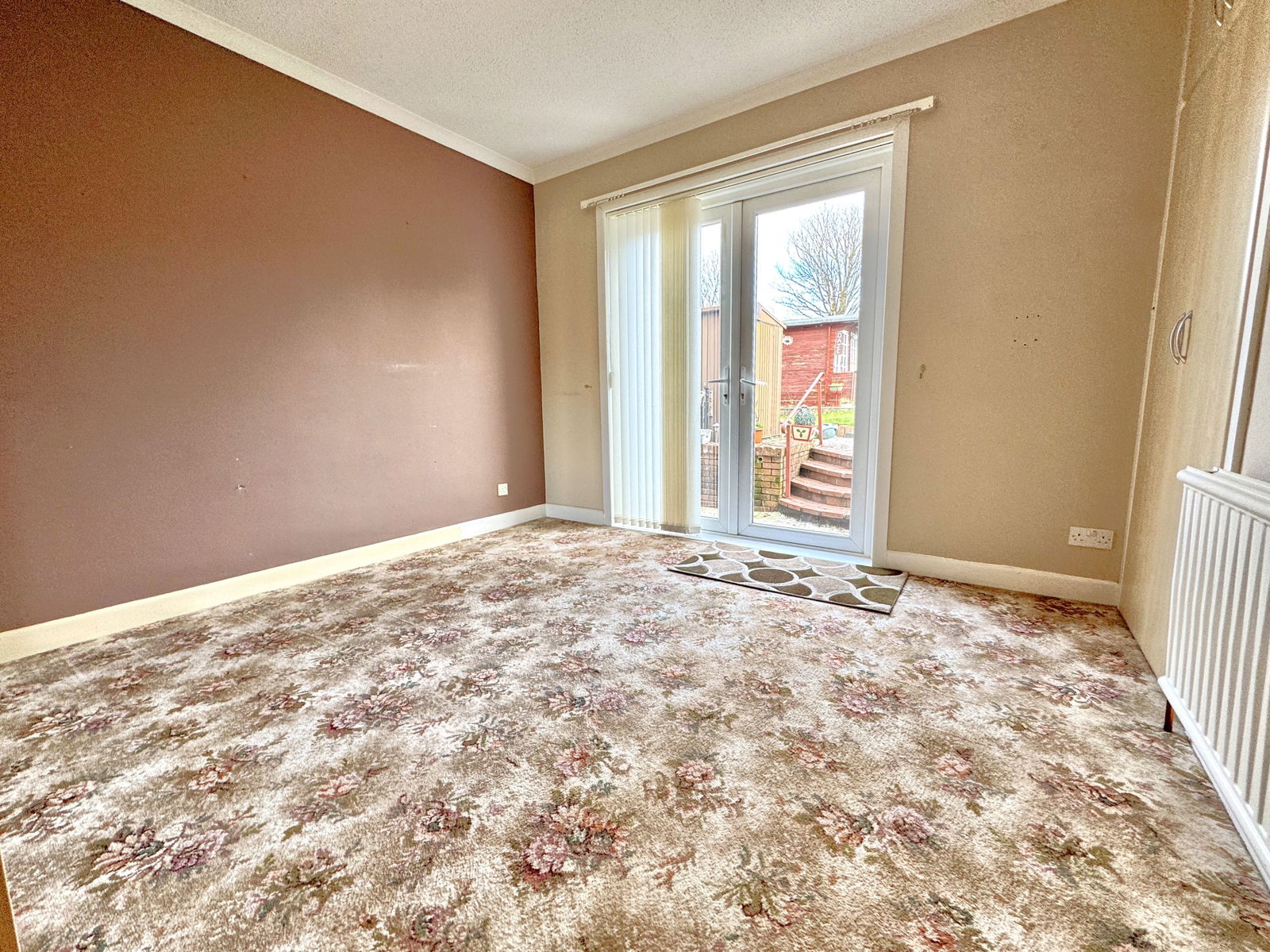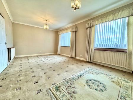 Two PVCu double glazed windows to the front, living flame-effect fire with tiled surround, mantle and hearth, and two radiators.
